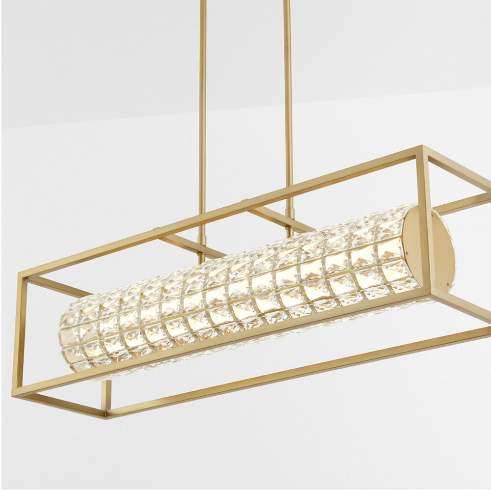 Oxygen Elan Aged Brass LED Island Light with Cylindrical ShadeManufacturer: Oxygen by Quorum Model #: 3-676-40 Oxygen Elan Aged Brass LED Island Light with Cylindrical Shade