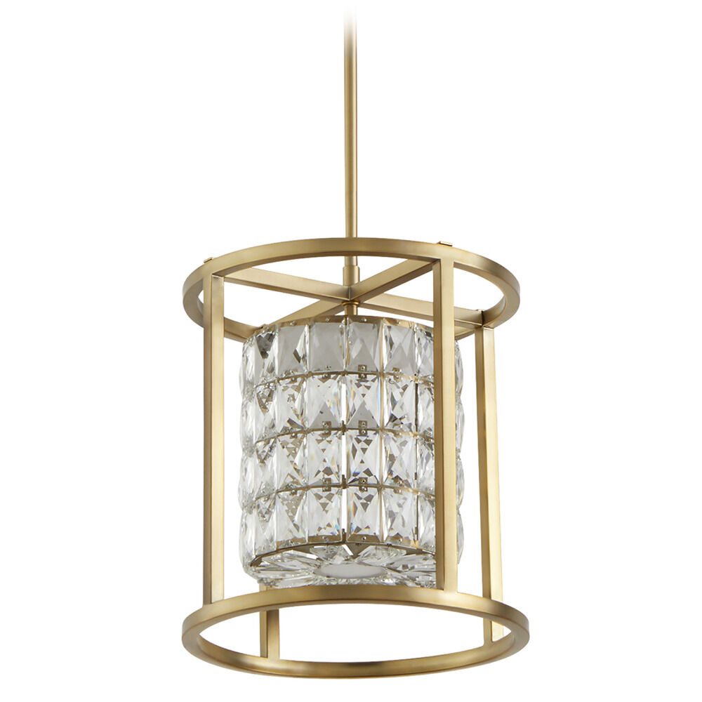 Contemporary / modern aged brass 1-light pendant light with clear,cut glass shade