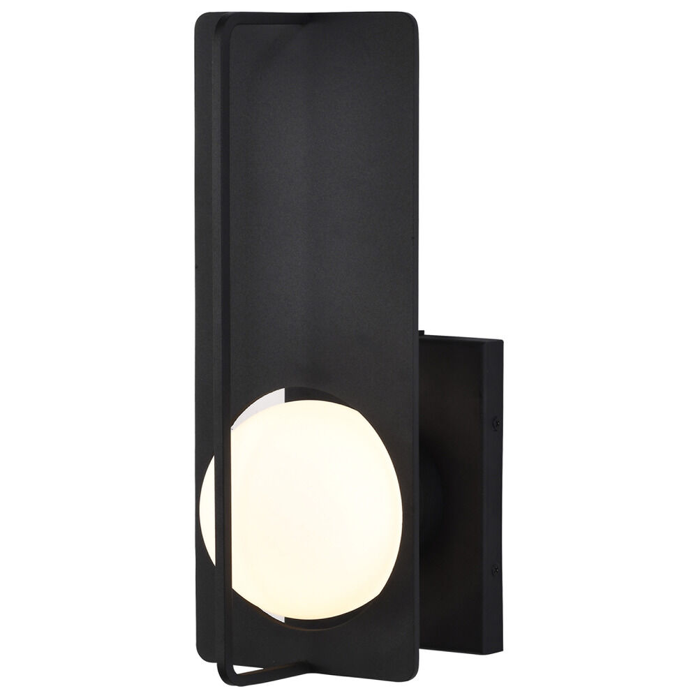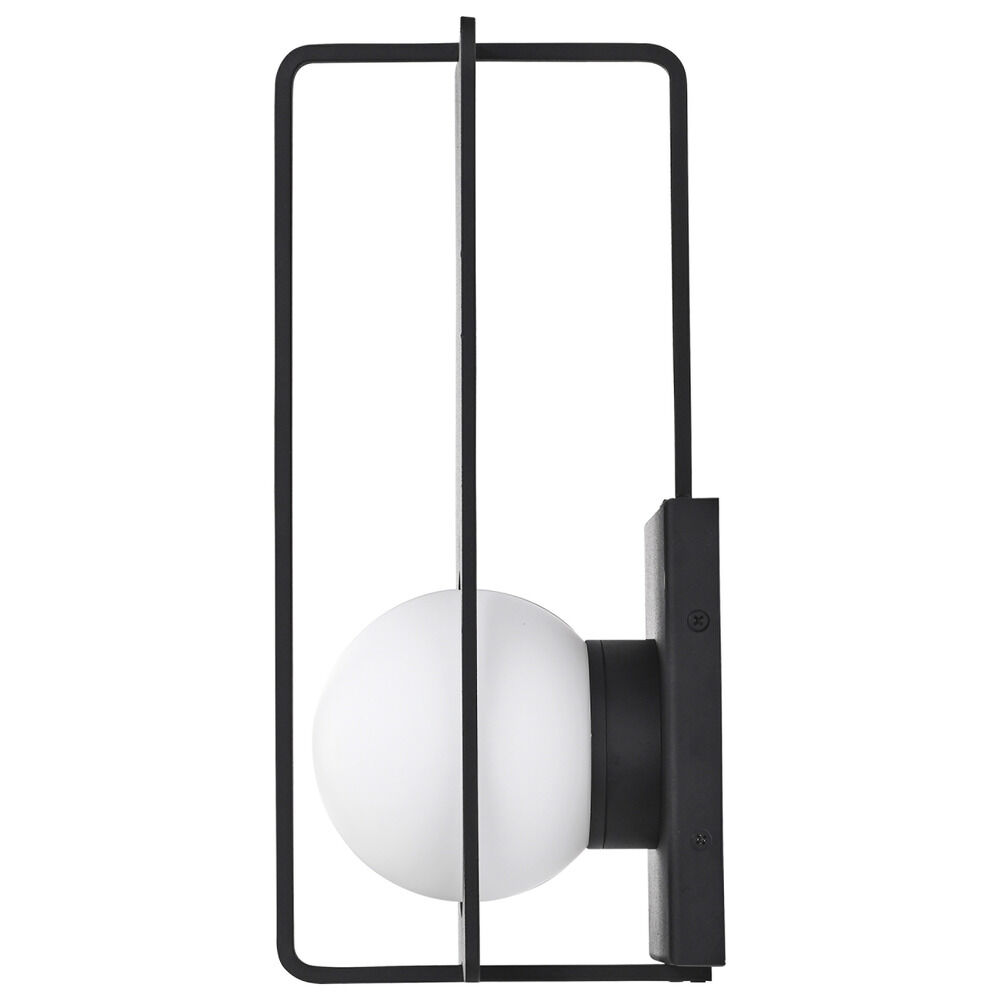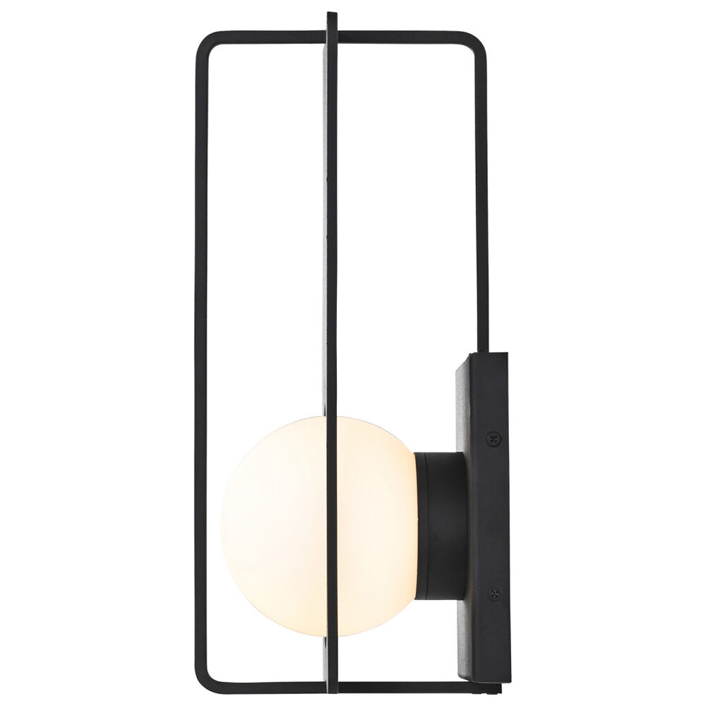 Contemporary / modern matte black 1-light outdoor wall light with opal white glass shade