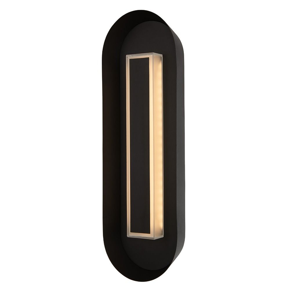 The Prescott large outdoor wall sconce is a simple and subtle way to add warm light to your home's exterior. The Prescott features a mitered glass box in the middle of the oval body, which houses the integrated LED diode. Also available in a smaller size.