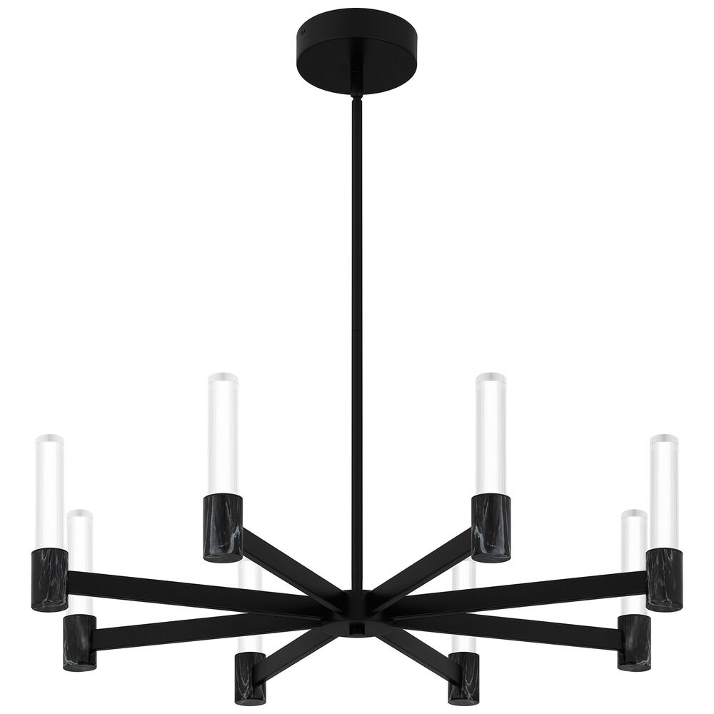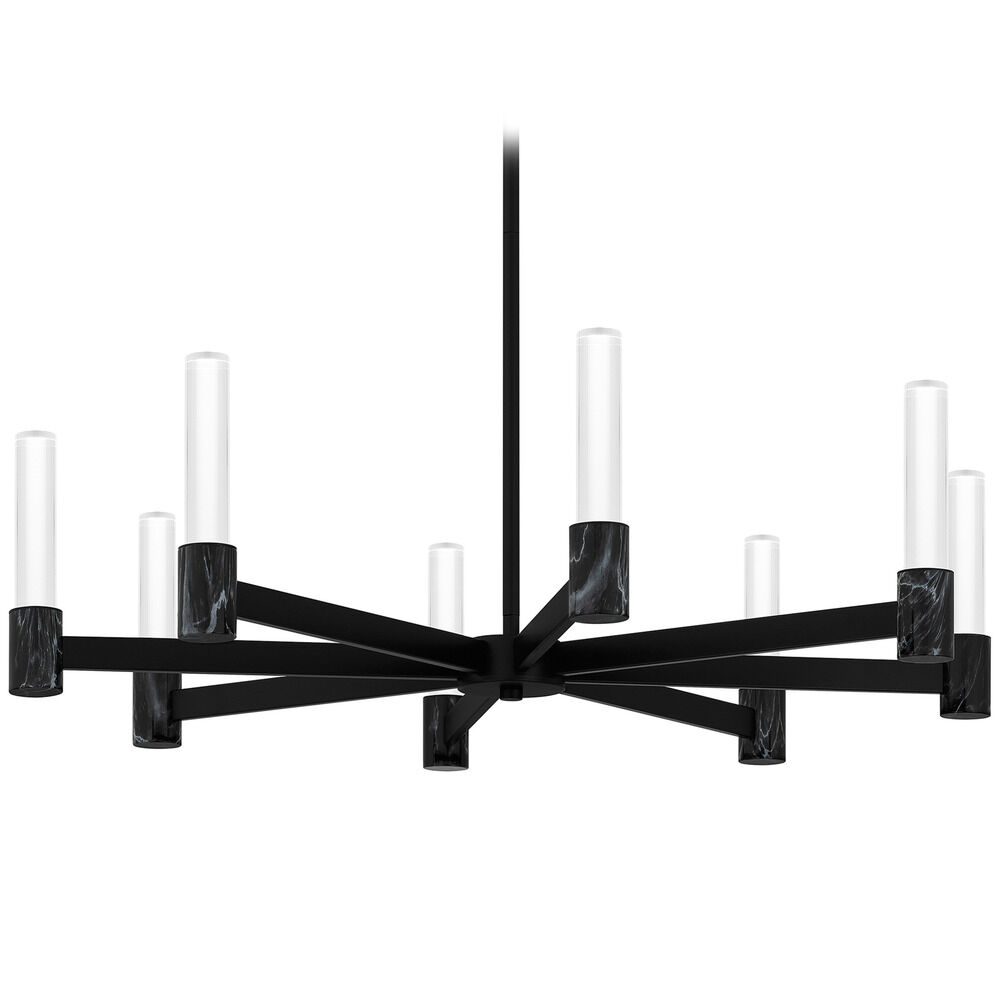 Contemporary / modern matte black 8-light chandelier with clear bubble acrylic shade