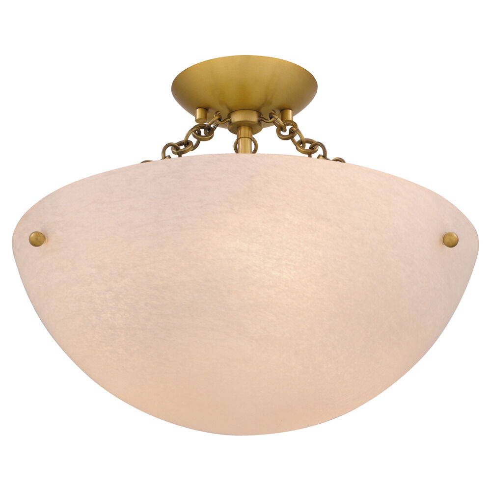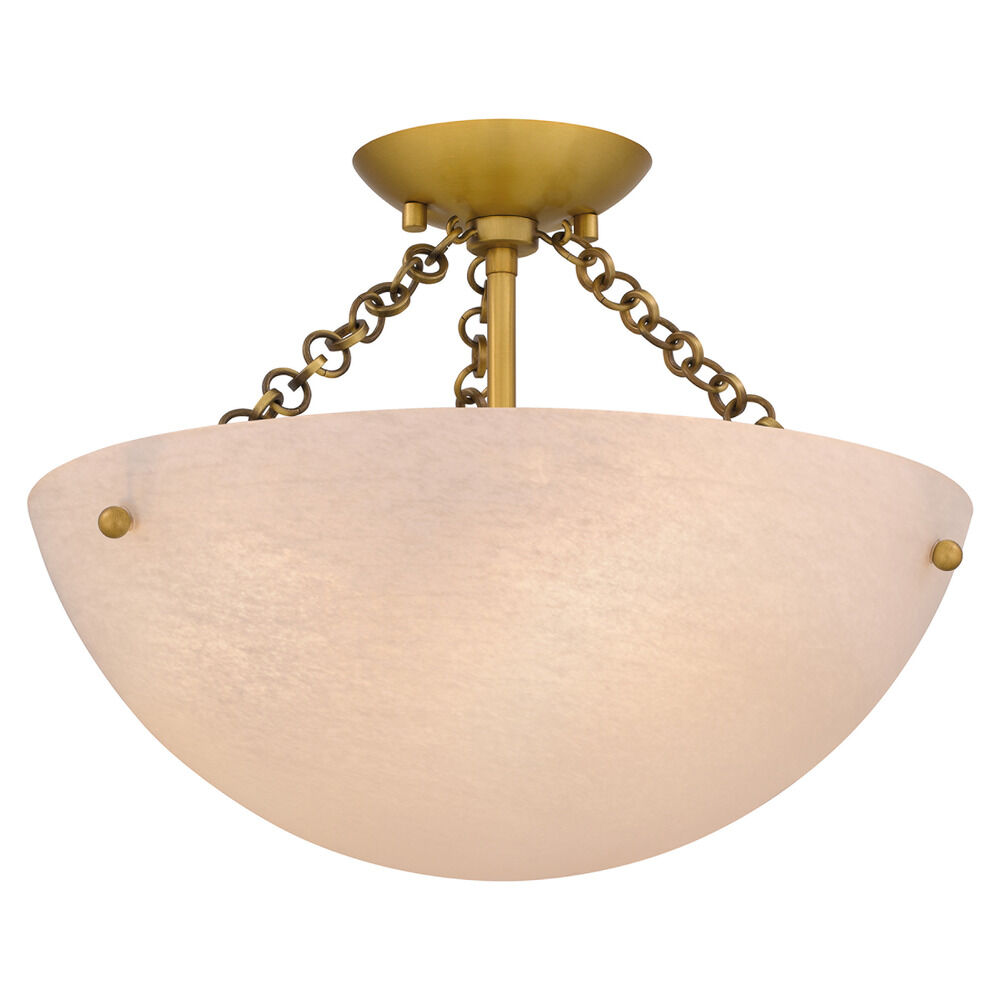Transitional brushed gold 3-light indoor ceiling light with alabaster glass shade