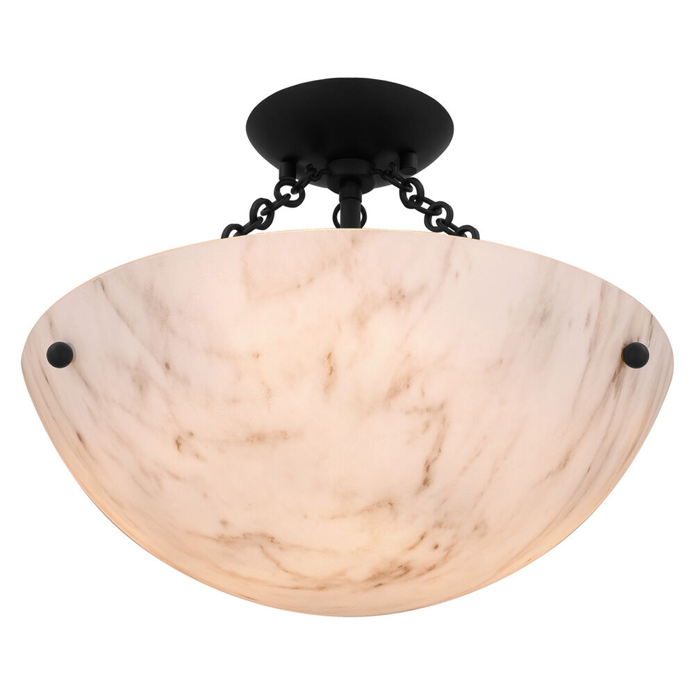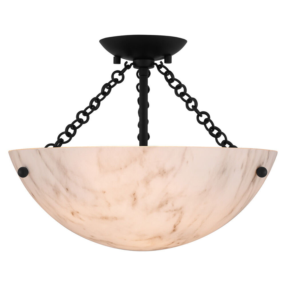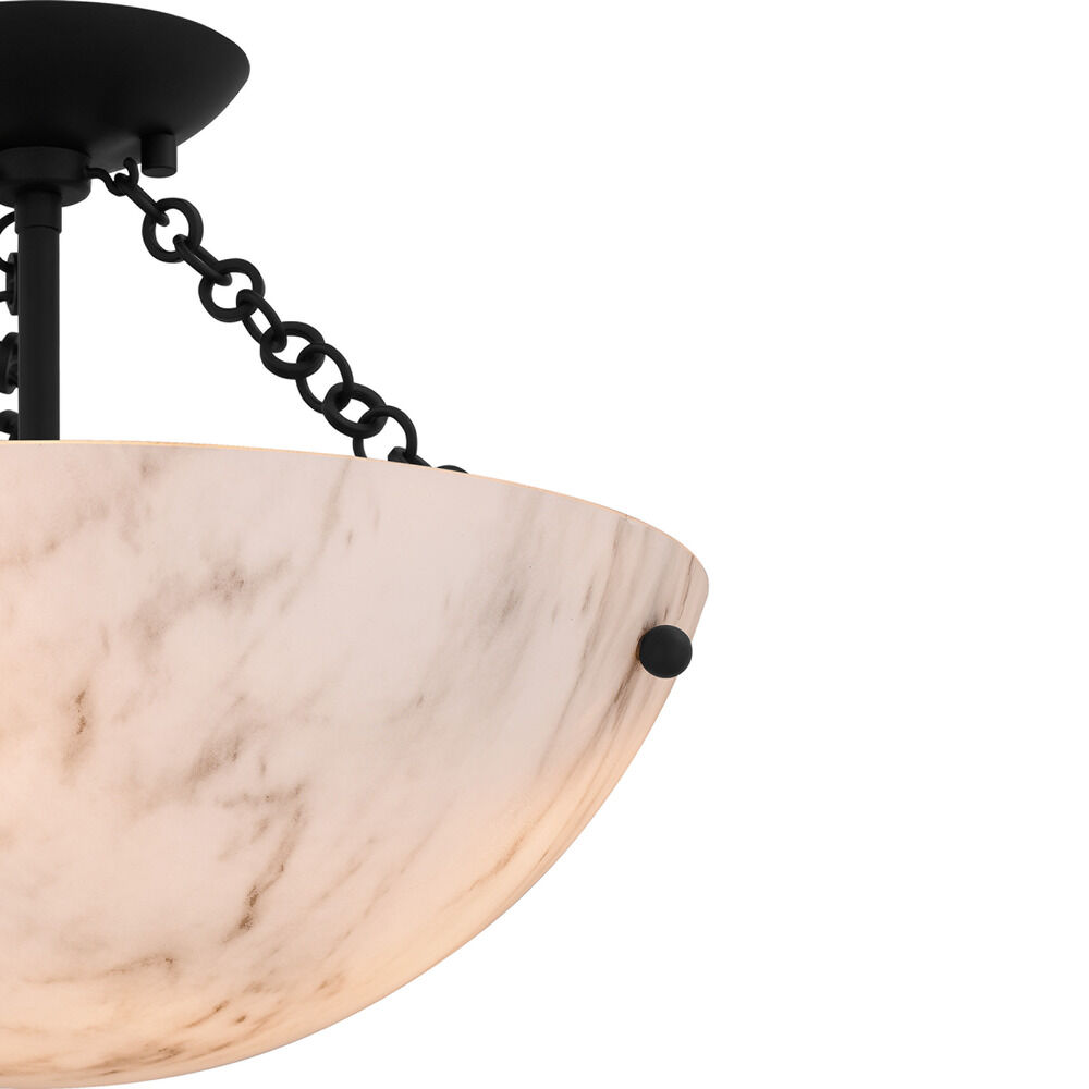 Transitional matte black 3-light indoor ceiling light with marble glass shade