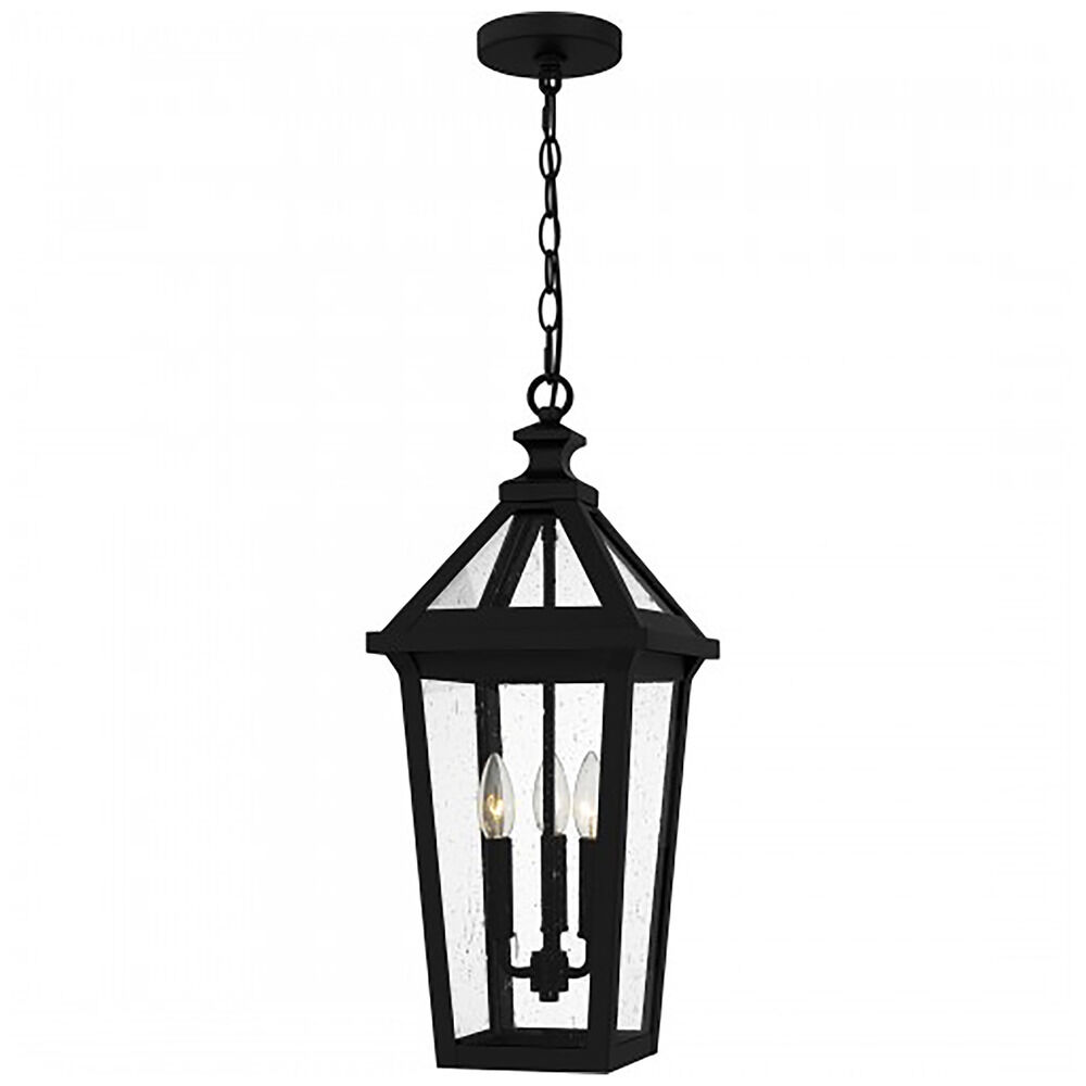 The following are detailed specifications about the Quoizel Lighting Boulevard Matte Black Outdoor Hanging Light.
