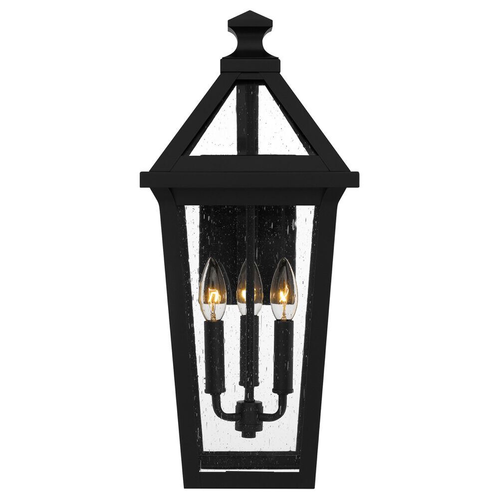 Traditional matte black 3-light outdoor wall light with clear,seeded clear seeded glass shade