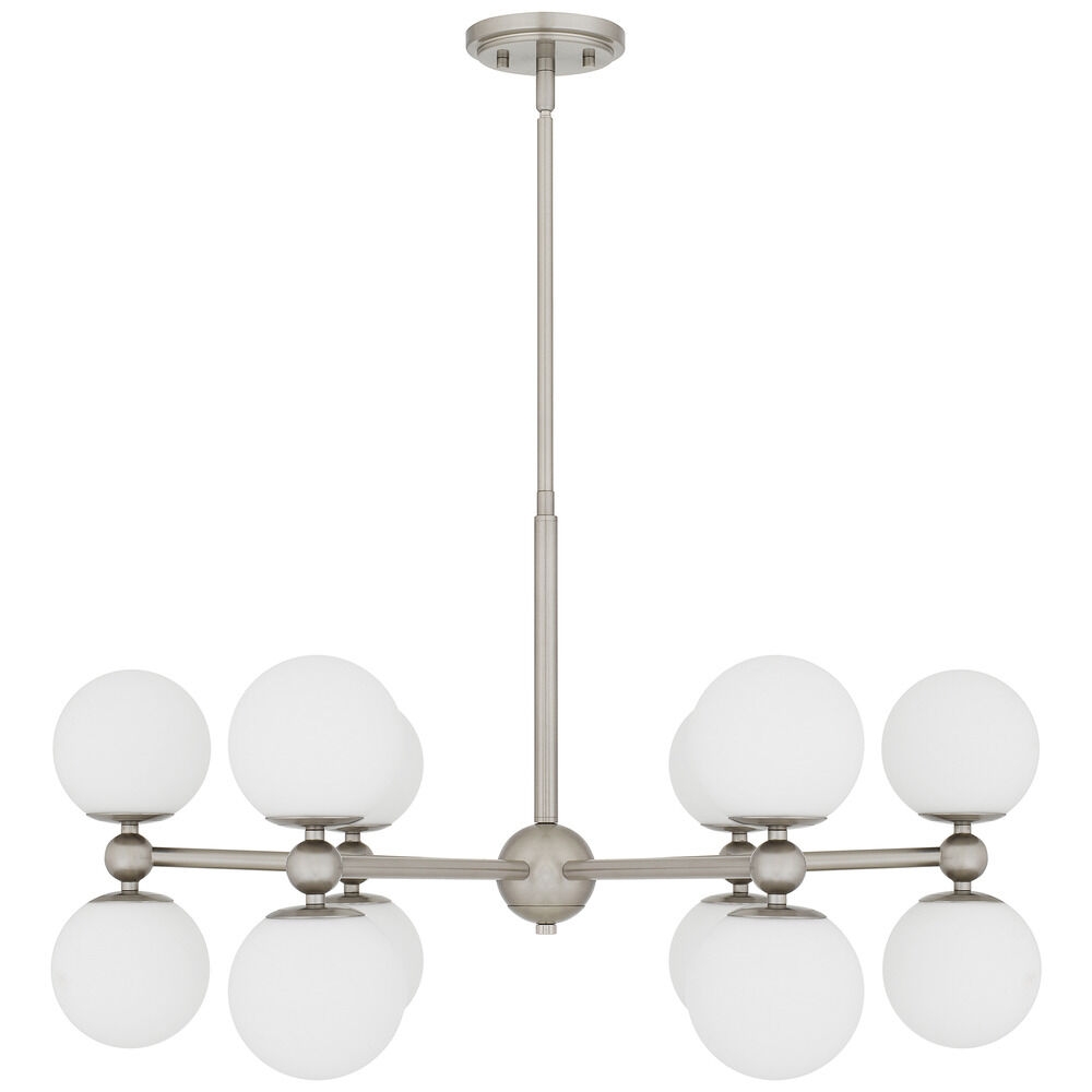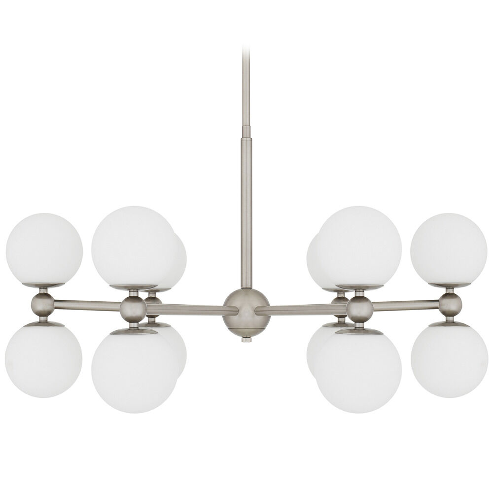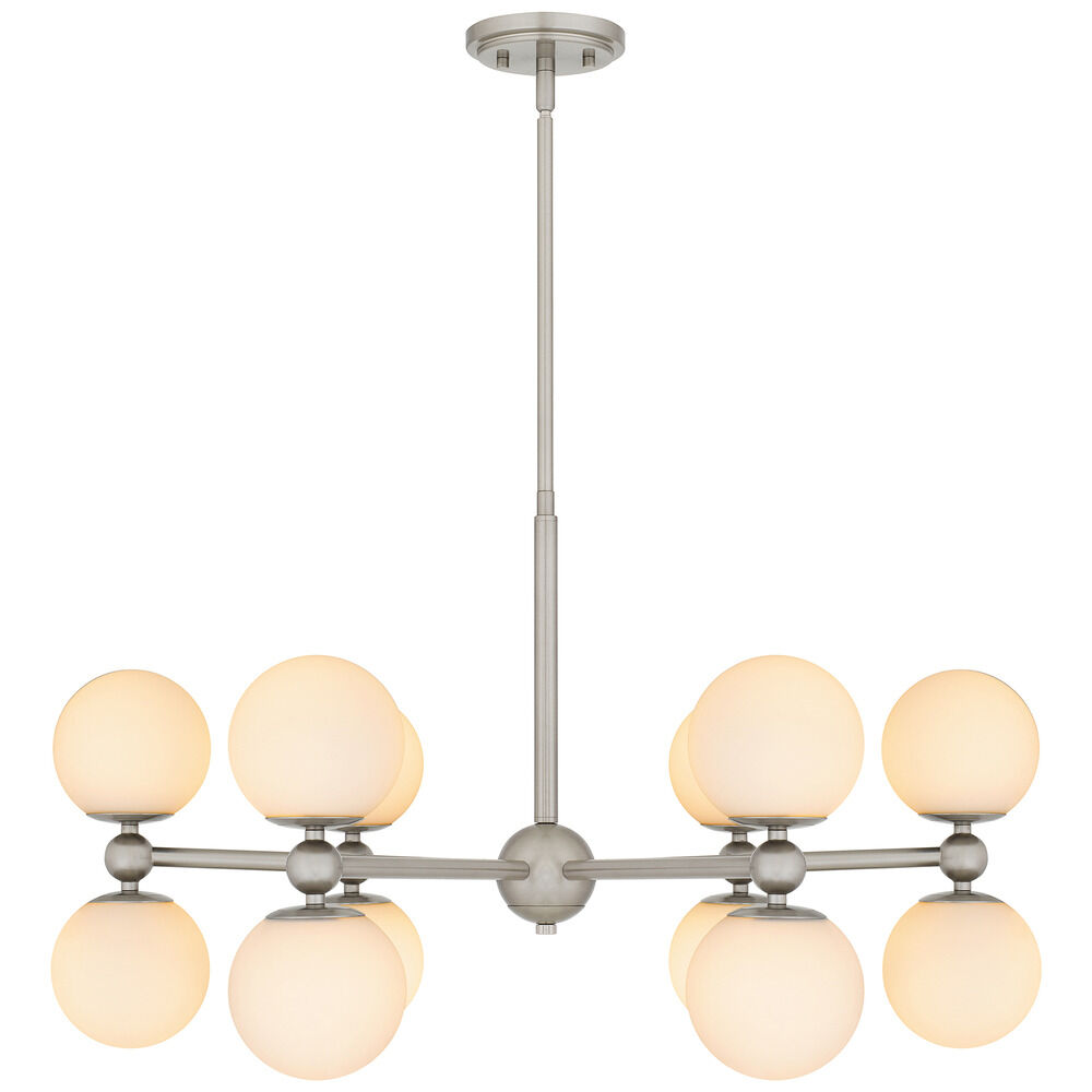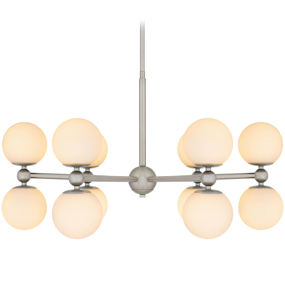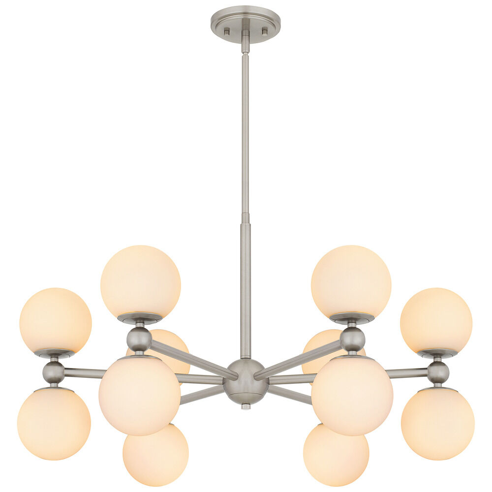 Contemporary / modern brushed nickel 12-light chandelier with etched opal glass shade