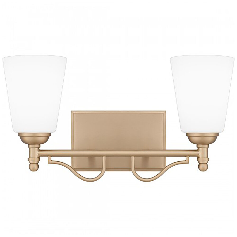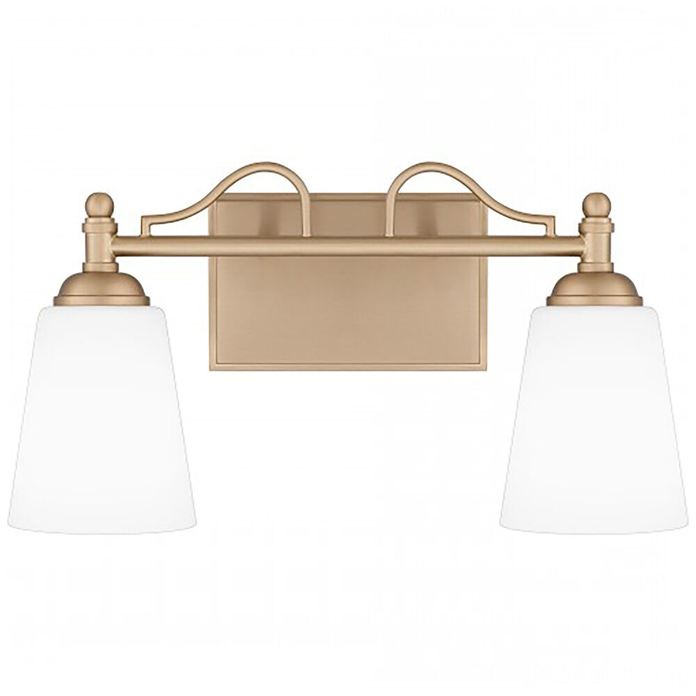 Transitional bronze gold 2-light bathroom light with etched opal glass shade