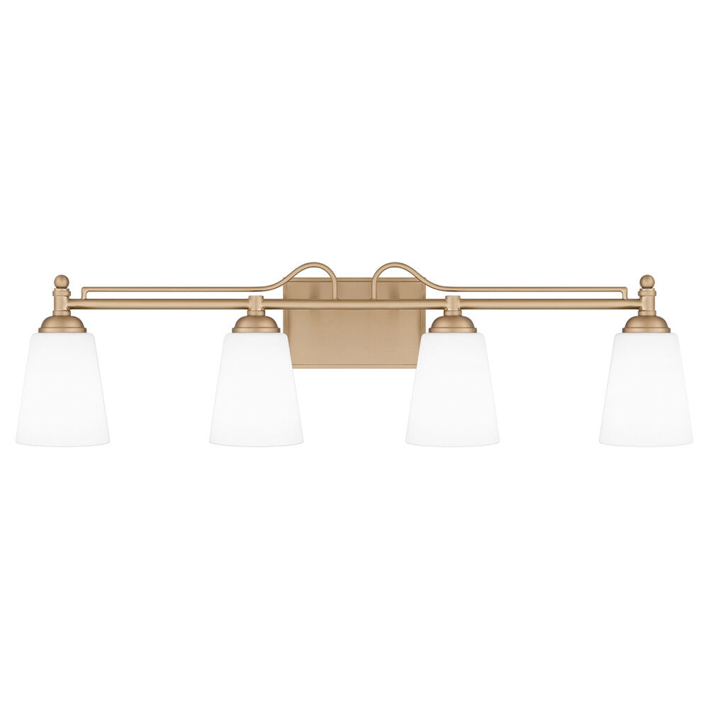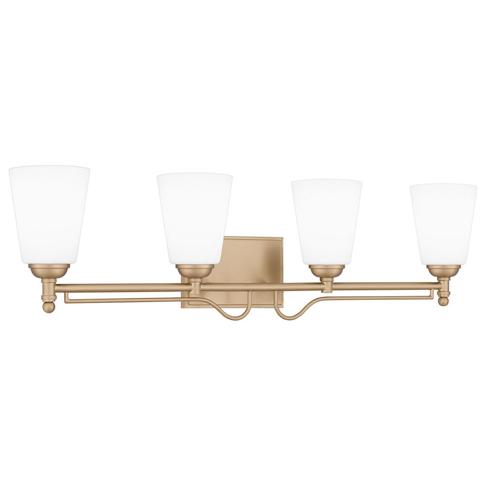 Transitional bronze gold 4-light bathroom light with etched opal etched glass shade