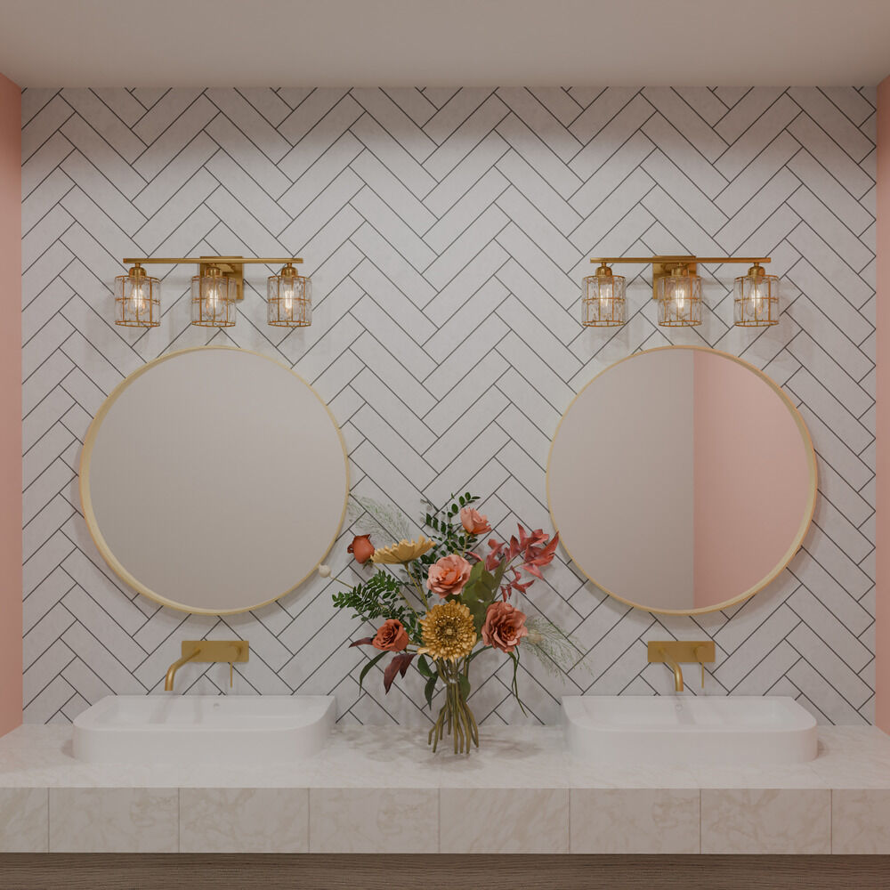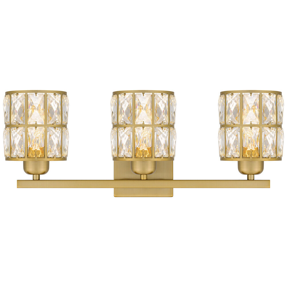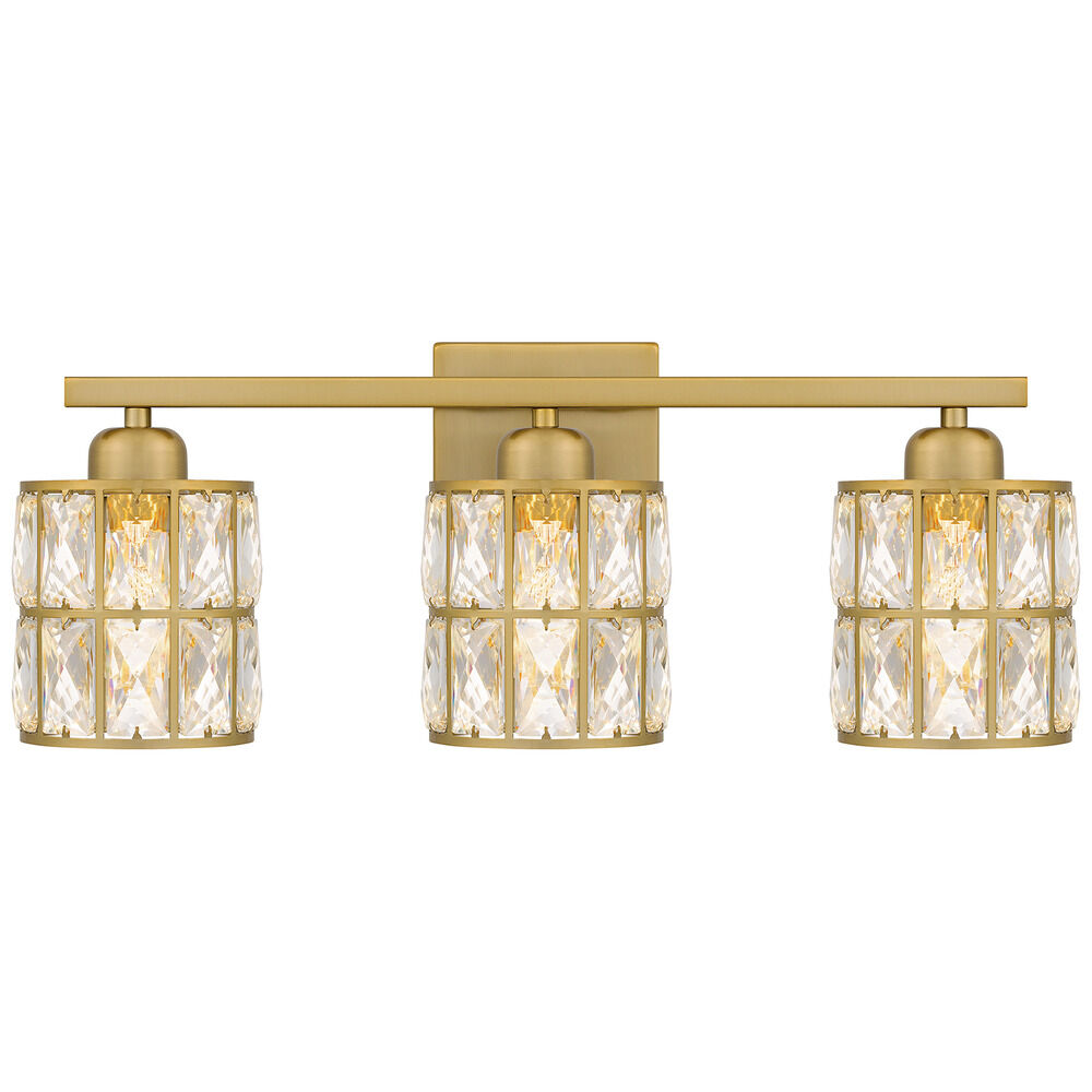 Contemporary / modern aged brass 3-light bathroom light with clear crystal shade
