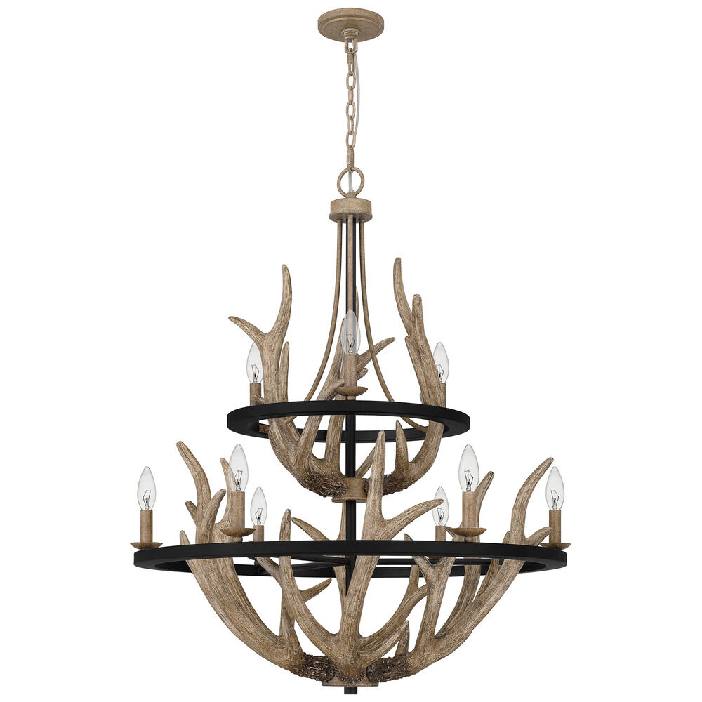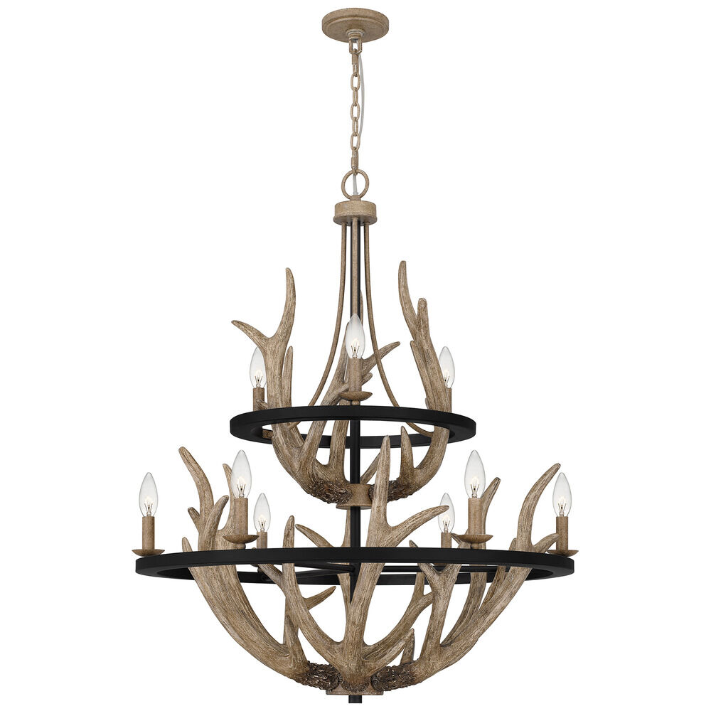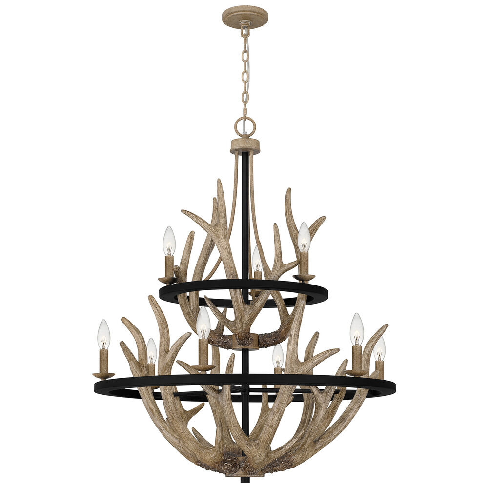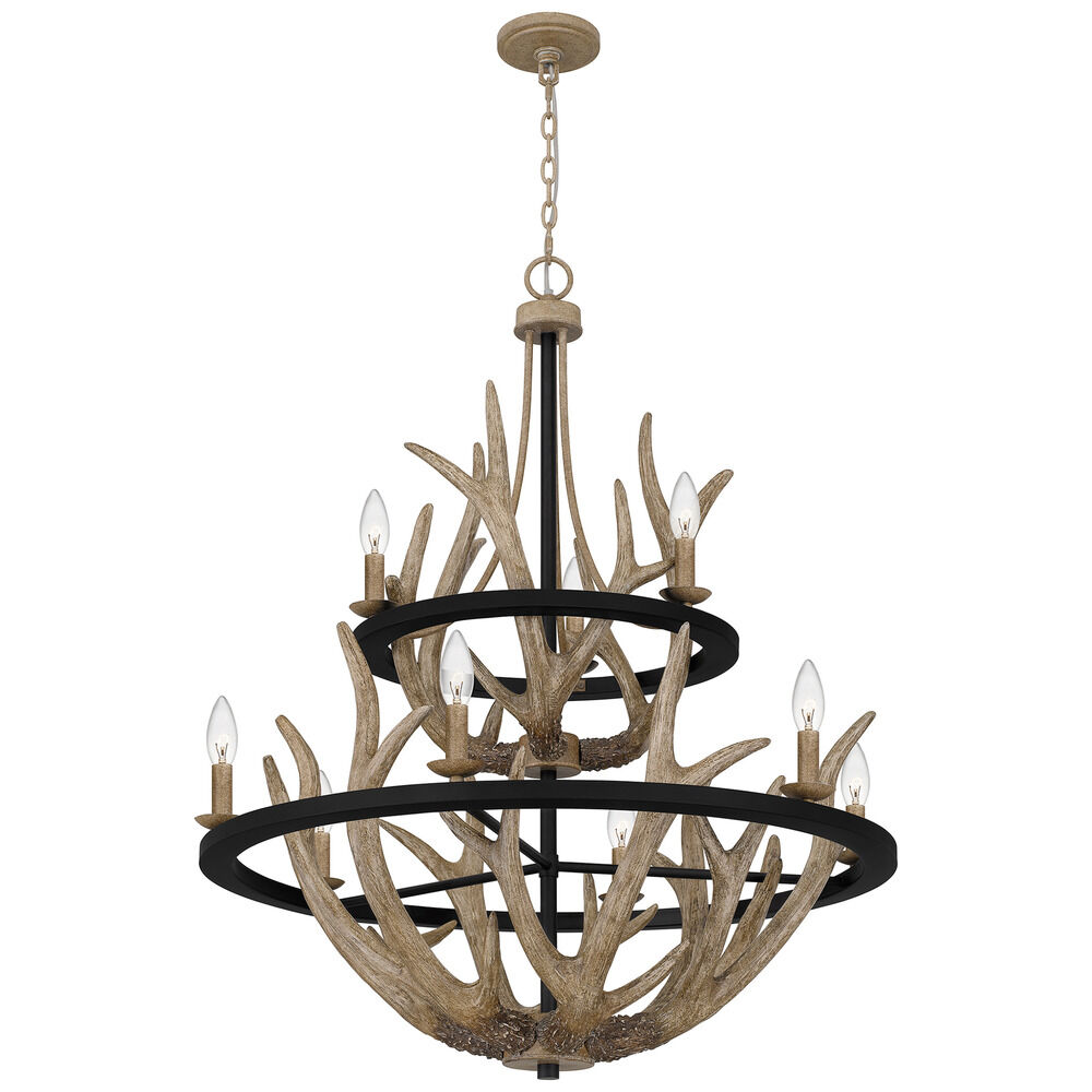 Rustic Black Chandelier with Faux Antlers by Quoizel Lighting