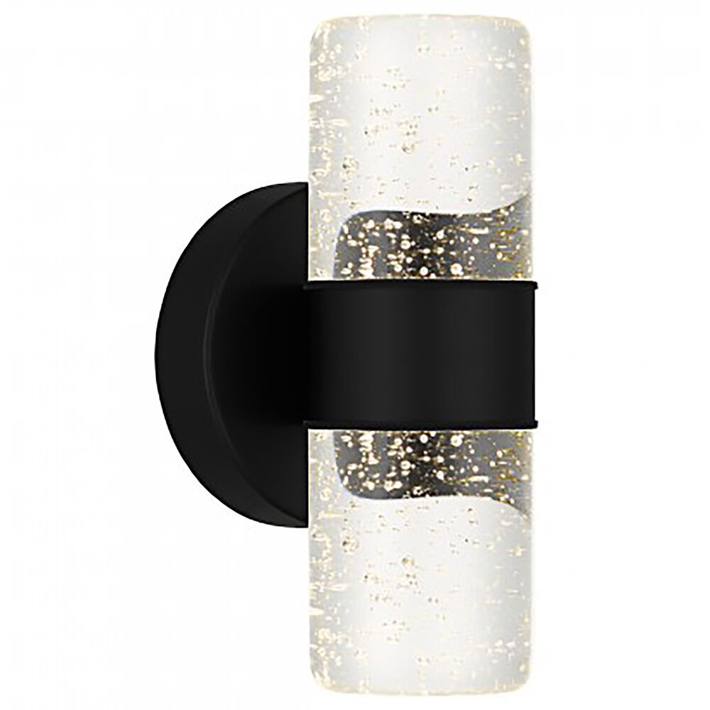 Contemporary / modern matte black 1-light outdoor wall light with clear,seeded clear seedy glass shade
