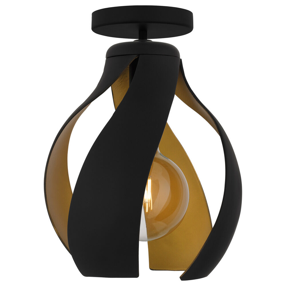 Contemporary / modern matte black & gold 1-light indoor ceiling light with matte black cage shade