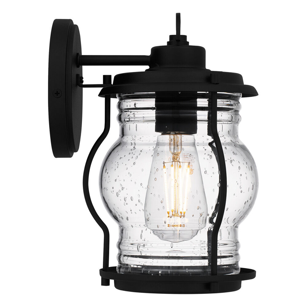Coastal earth black 1-light outdoor wall light with clear,seeded clear seeded glass shade