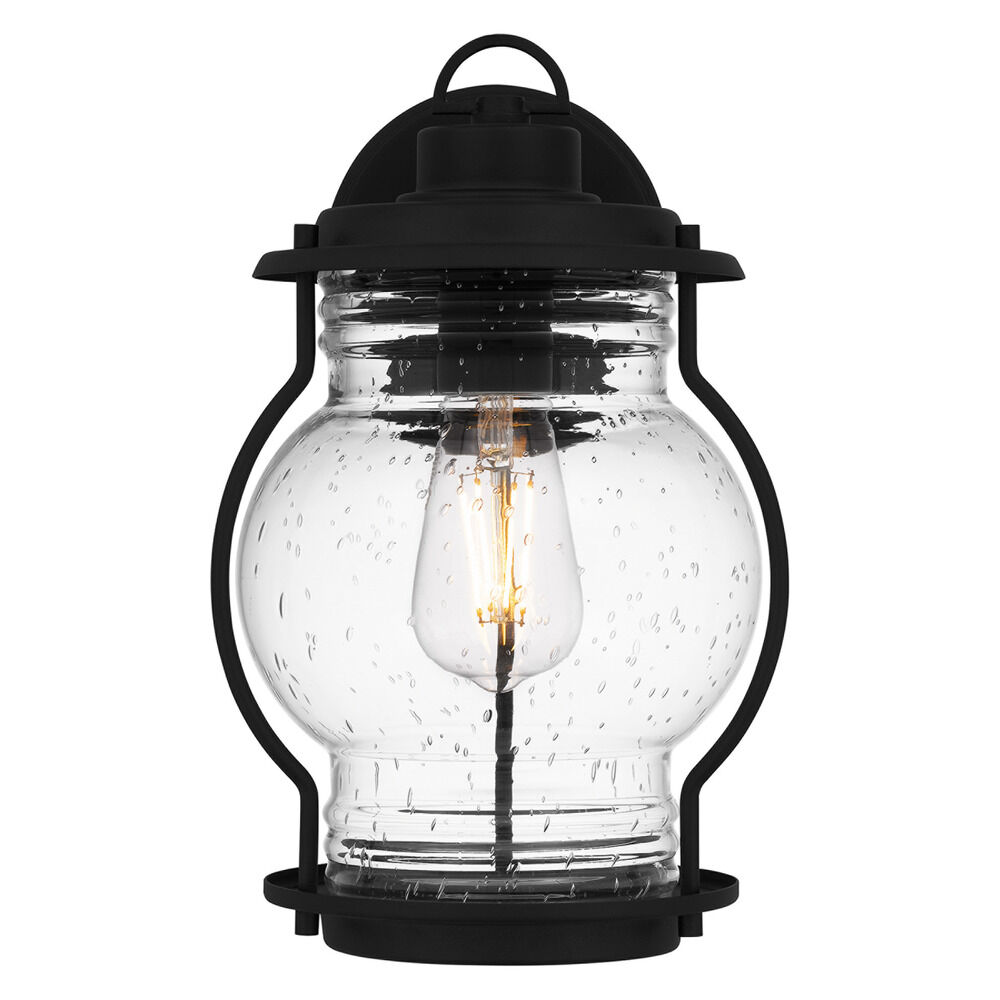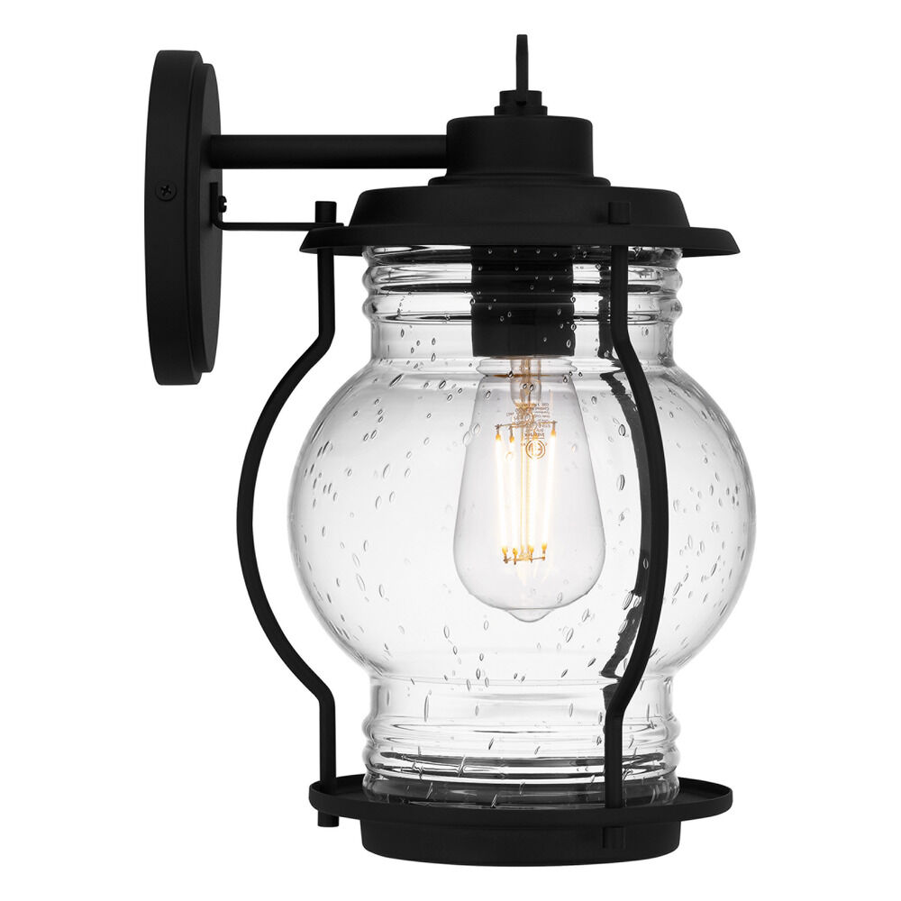 Coastal earth black 1-light outdoor wall light with clear,seeded clear seeded glass shade