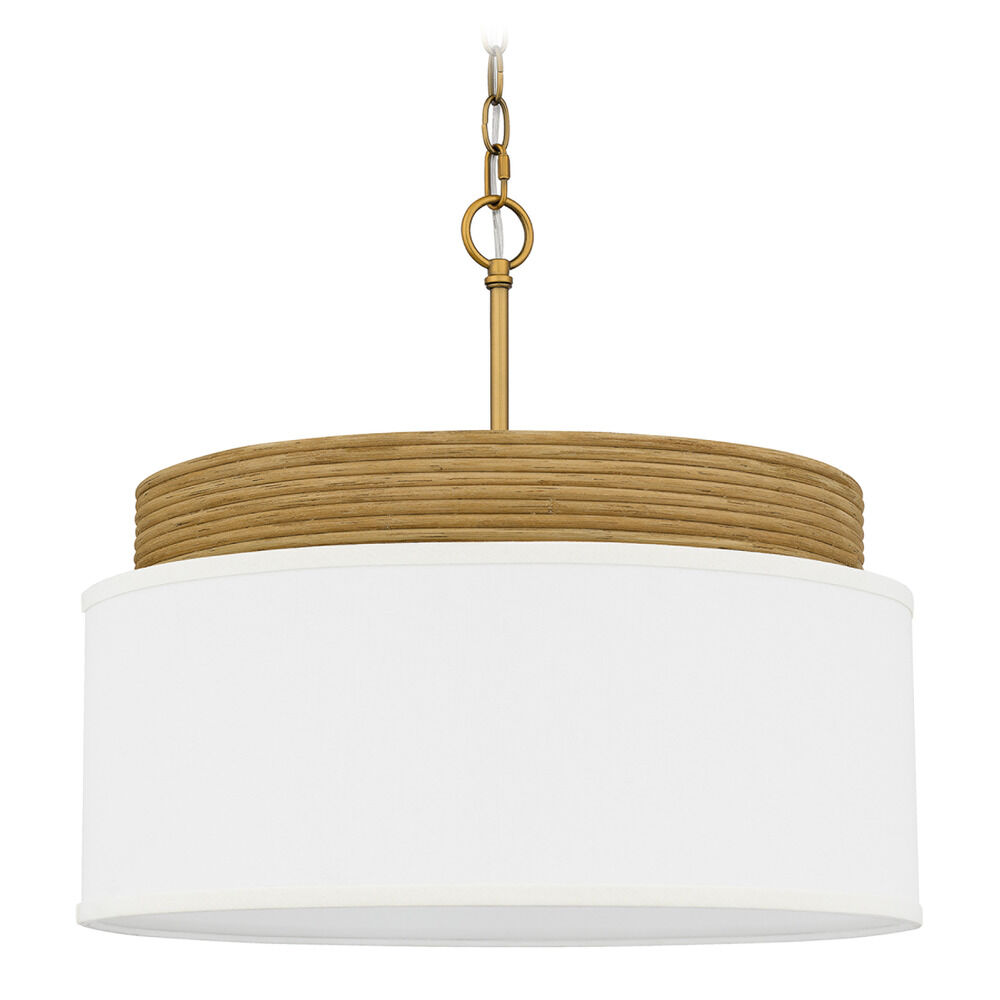 This Quoizel Lighting Malia Brushed Gold & Real Rattan Pendant Light with Drum Shade is part of the Malia Collection from Quoizel Lighting. The following items are also part of the Malia Collection.