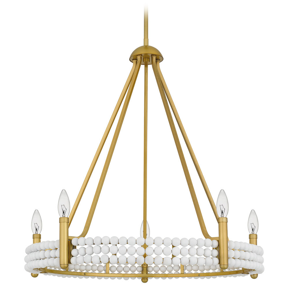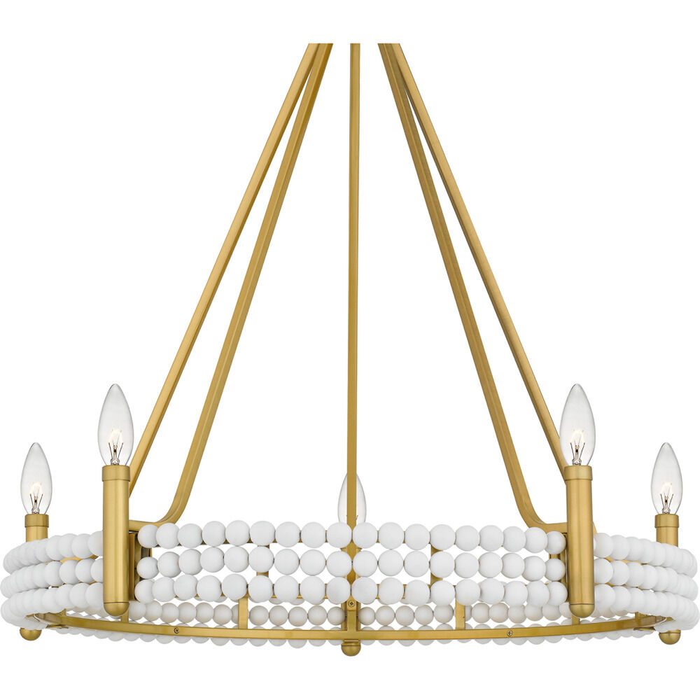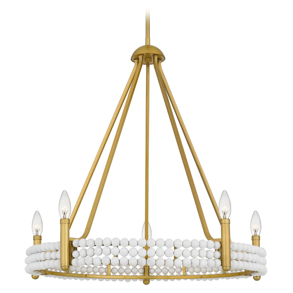 Quoizel Lighting Molly Brushed Gold & White Beads ChandelierManufacturer: Quoizel Lighting Model #: MOL5027BRG Quoizel Lighting Molly Brushed Gold & White Beads Chandelier