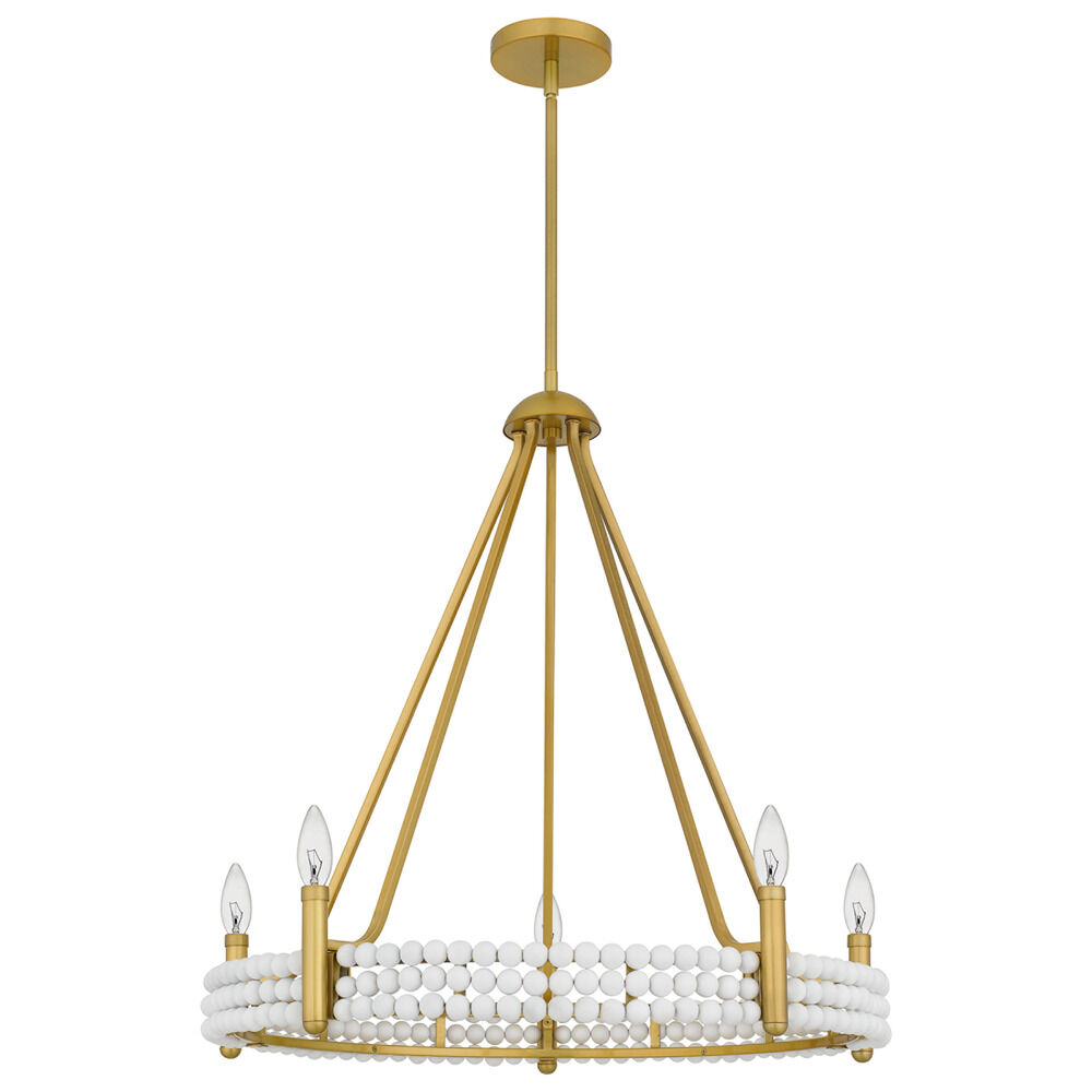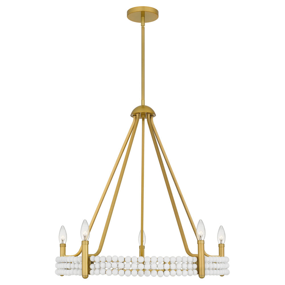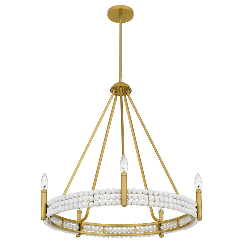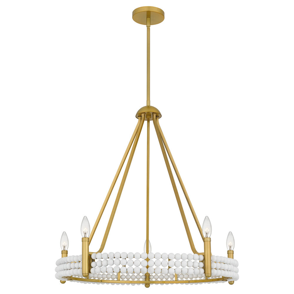 Quoizel Lighting Molly Brushed Gold & White Beads ChandelierManufacturer: Quoizel Lighting Model #: MOL5027BRG Quoizel Lighting Molly Brushed Gold & White Beads Chandelier