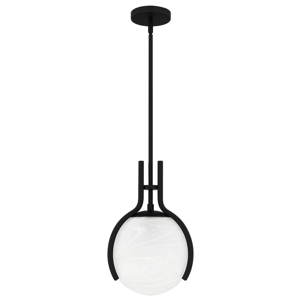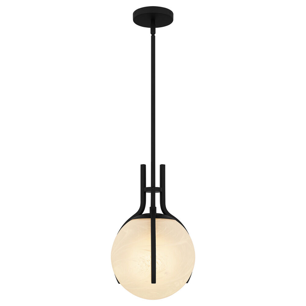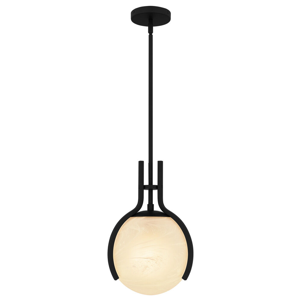 Contemporary / modern matte black 1-light pendant light with alabaster glass shade