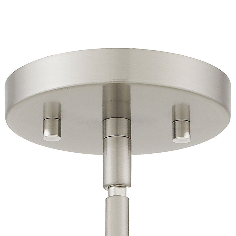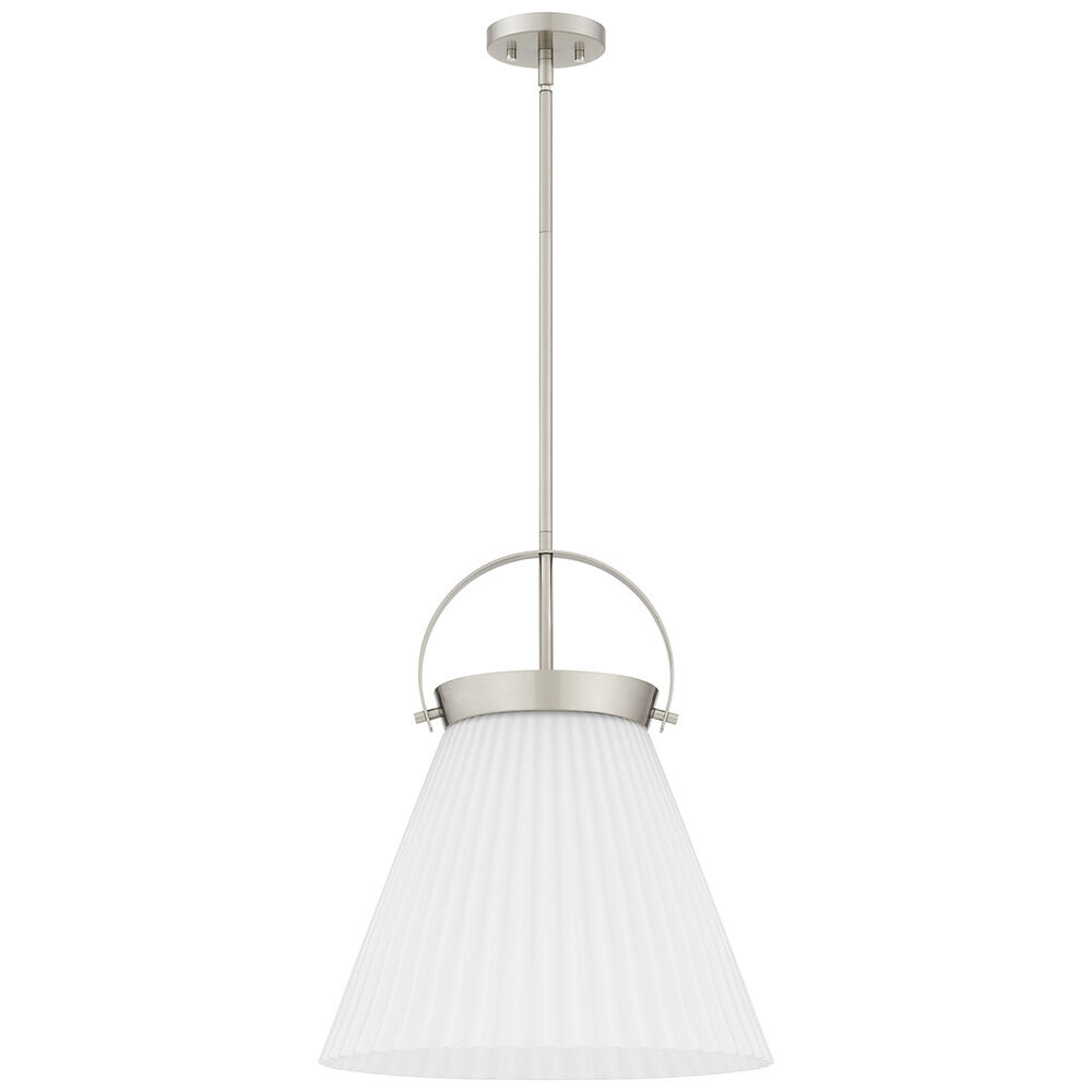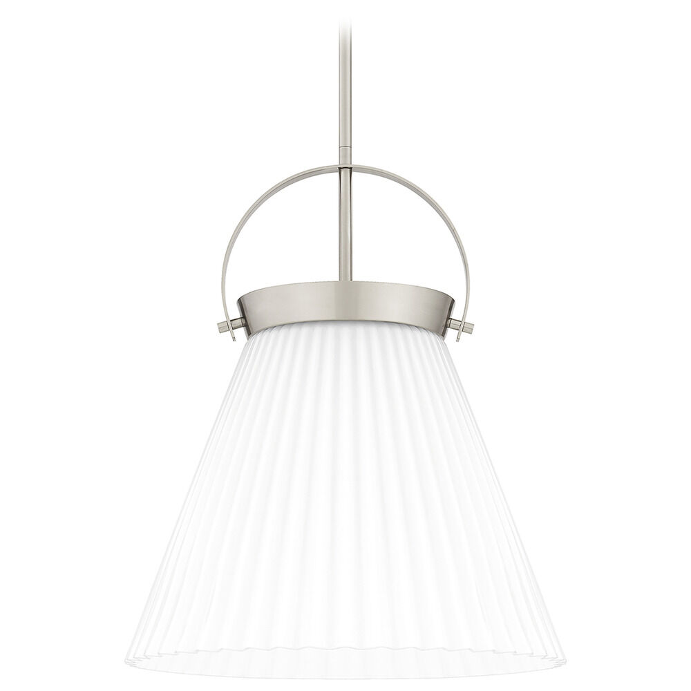 Contemporary / modern brushed nickel 1-light pendant light with ribbed white glass shade