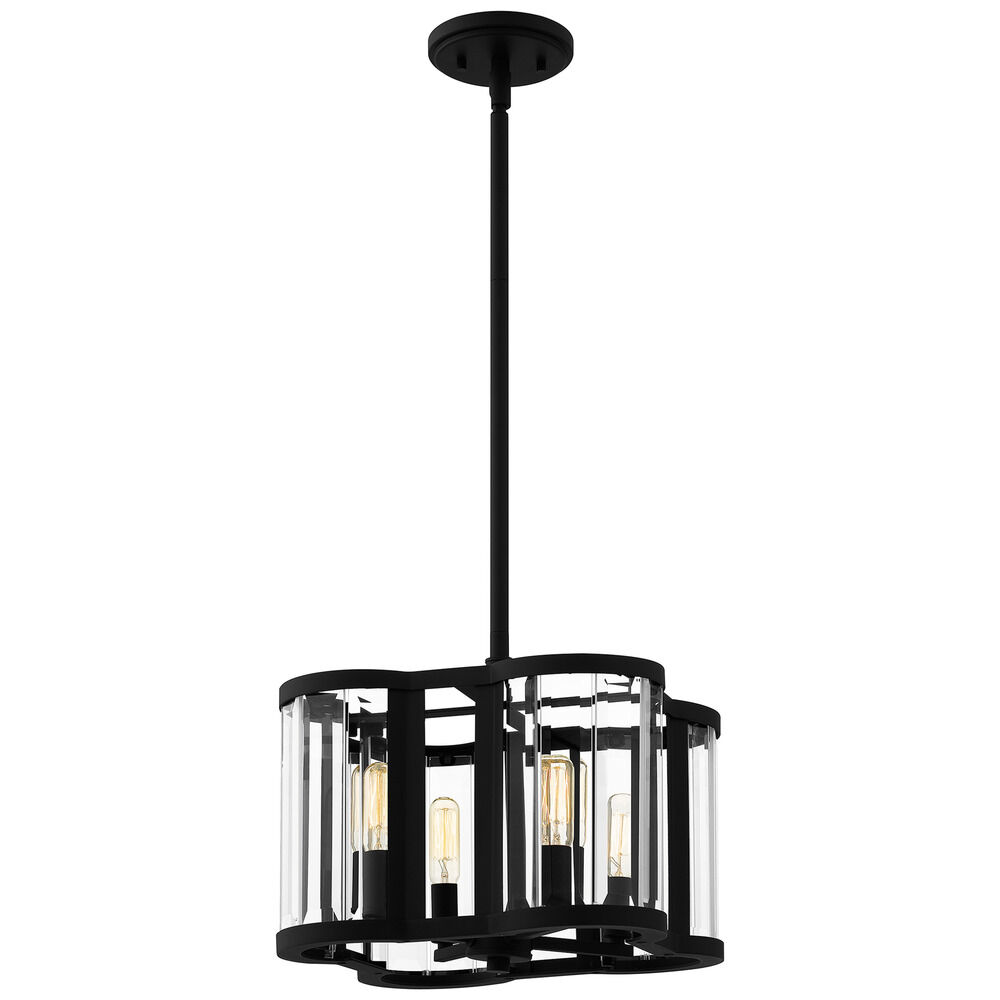 Contemporary / modern matte black 4-light pendant light with clear,beveled clear glass shade