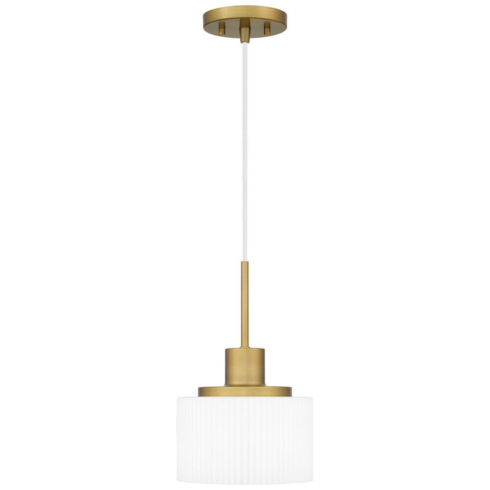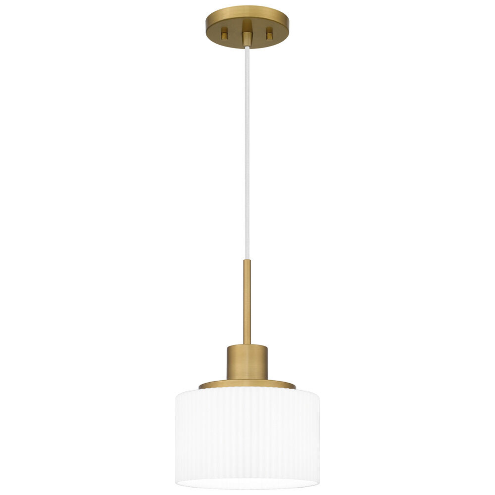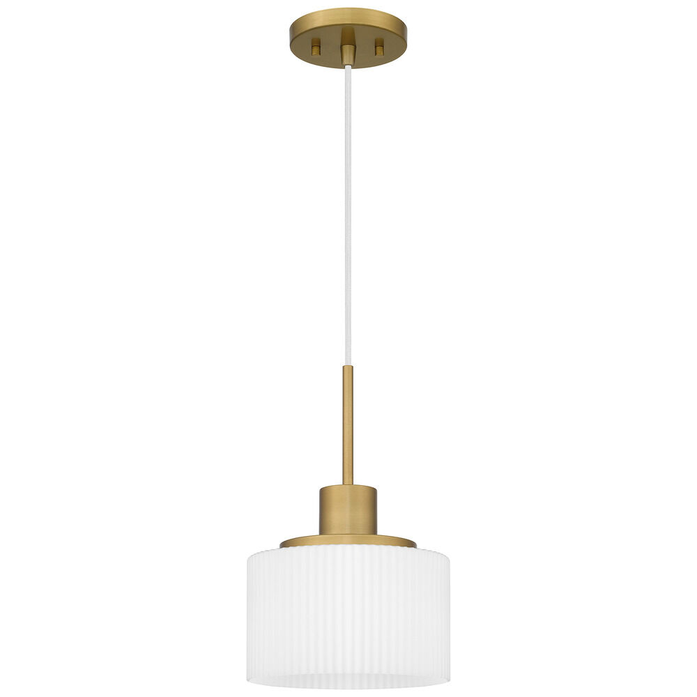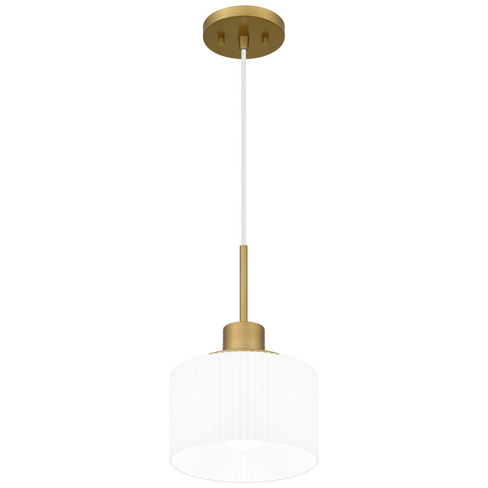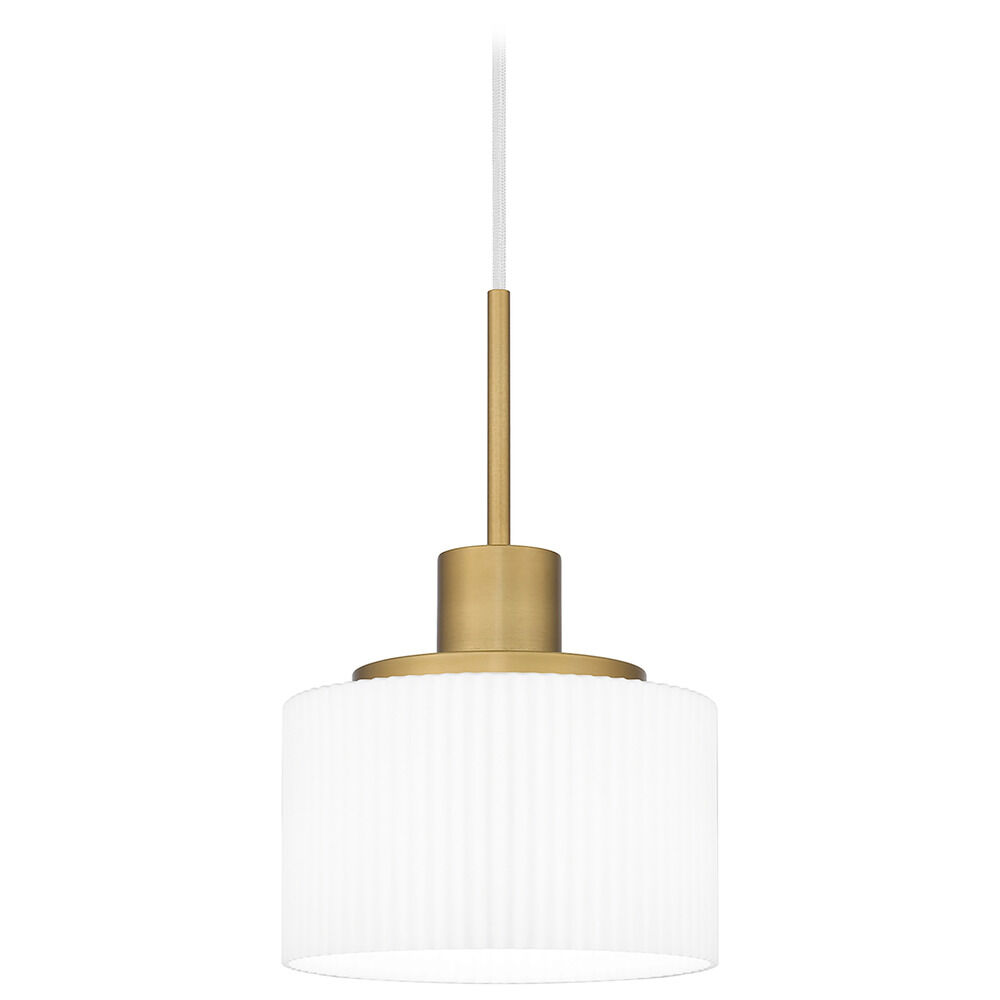 Contemporary / modern aged brass 1-light mini-pendant light with etched,ribbed opal glass shade