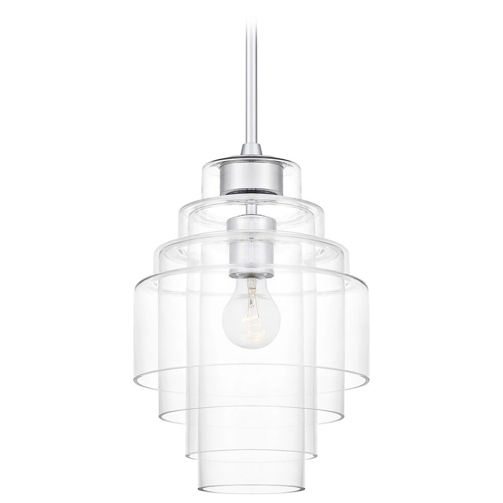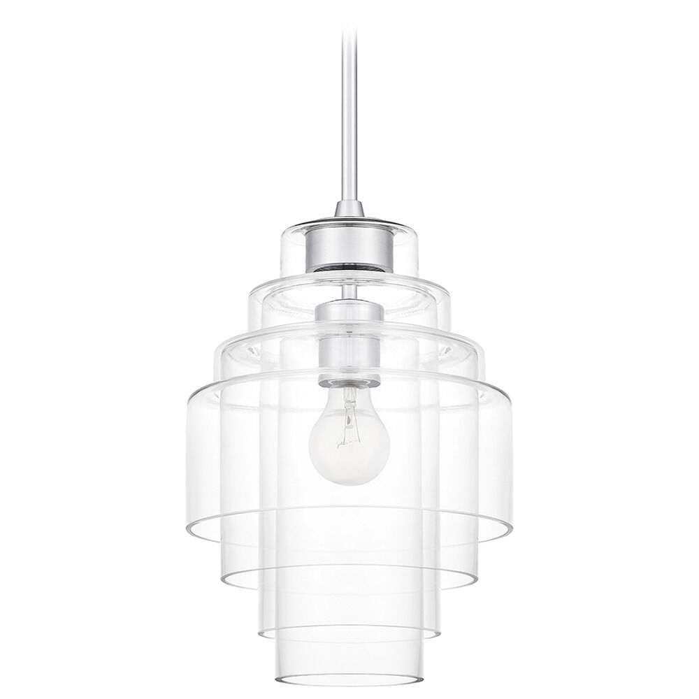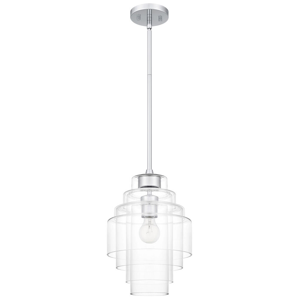 Contemporary / modern polished chrome 1-light pendant light with clear glass shade