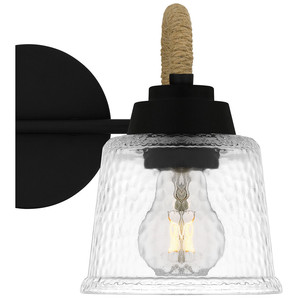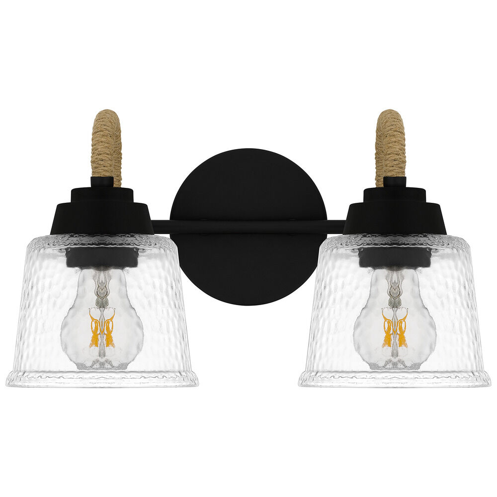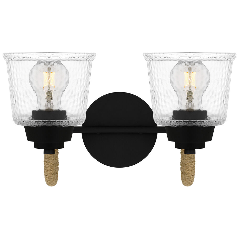 Coastal matte black 2-light bathroom light with clear,hammered,textured clear glass shade