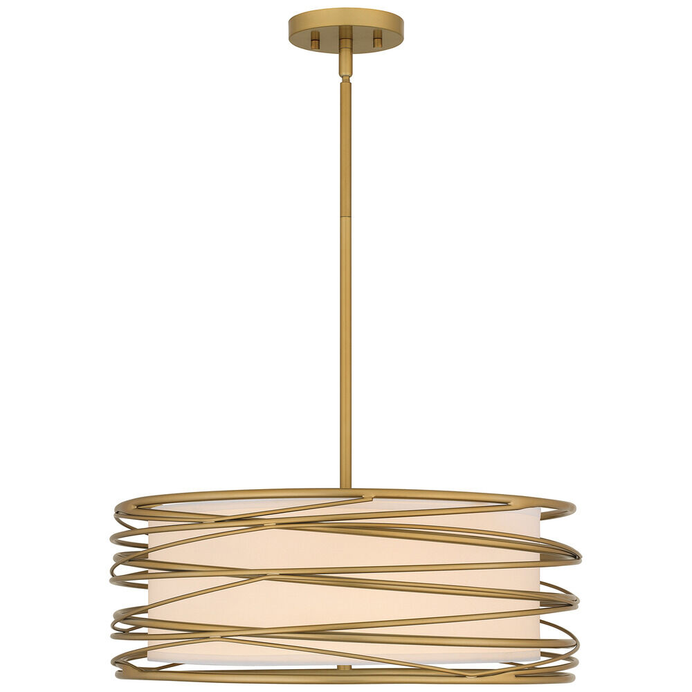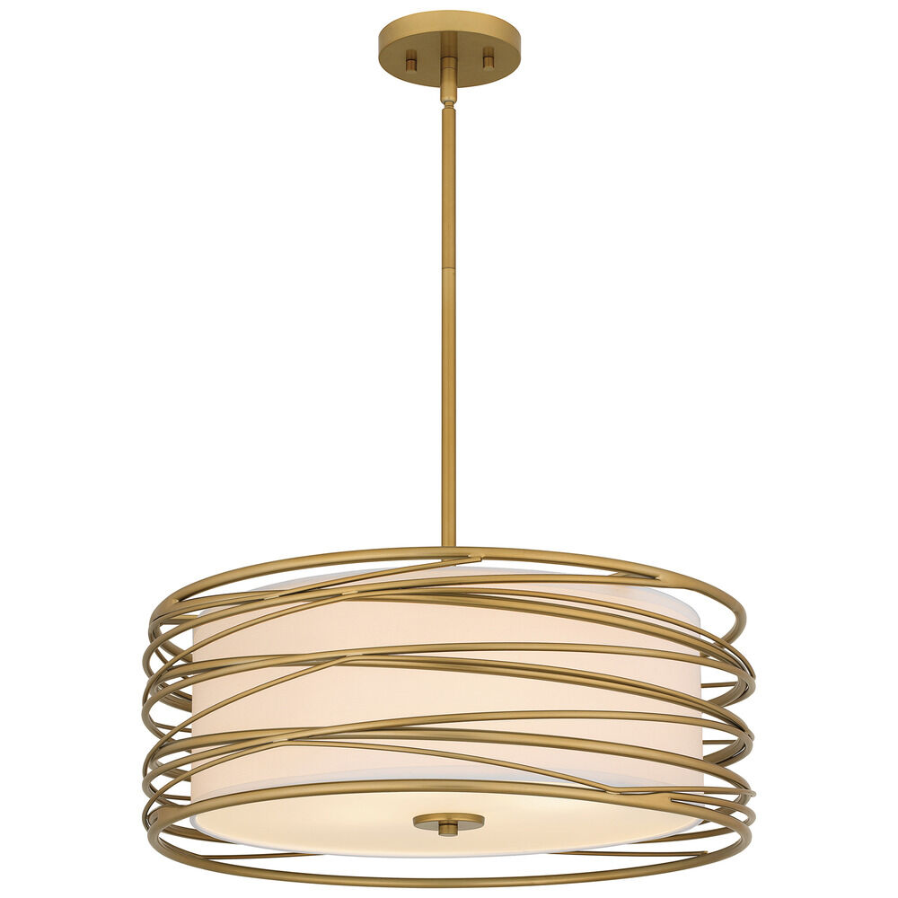 Transitional light gold 3-light pendant light with off white fabric shade