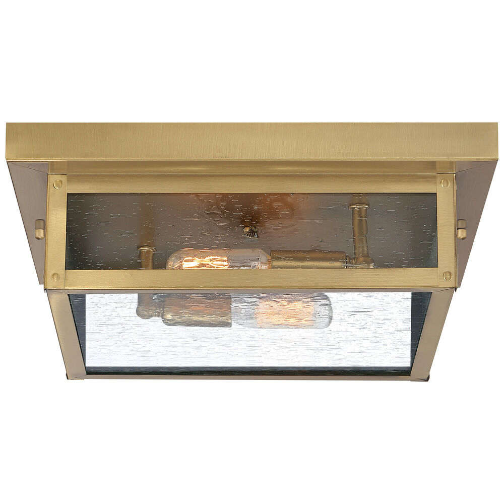 Contemporary / modern antique brass 2-light outdoor ceiling light with clear,seeded clear glass shade
