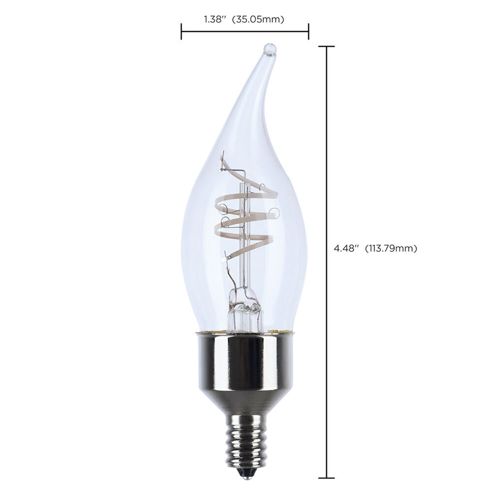 Featuring a CA11 flame-tip shape and an E12 candelabra base, this bulb is ideally suited for chandeliers, wall sconces, pendant fixtures, and other decorative applications where style is just as important as function. Consuming only 4 watts, it produces 350 lumens of brightness with a high 93 CRI, ensuring that colors appear vivid and true. Its 360-degree beam spread casts light evenly in all directions, minimizing shadows and enriching the overall ambiance.