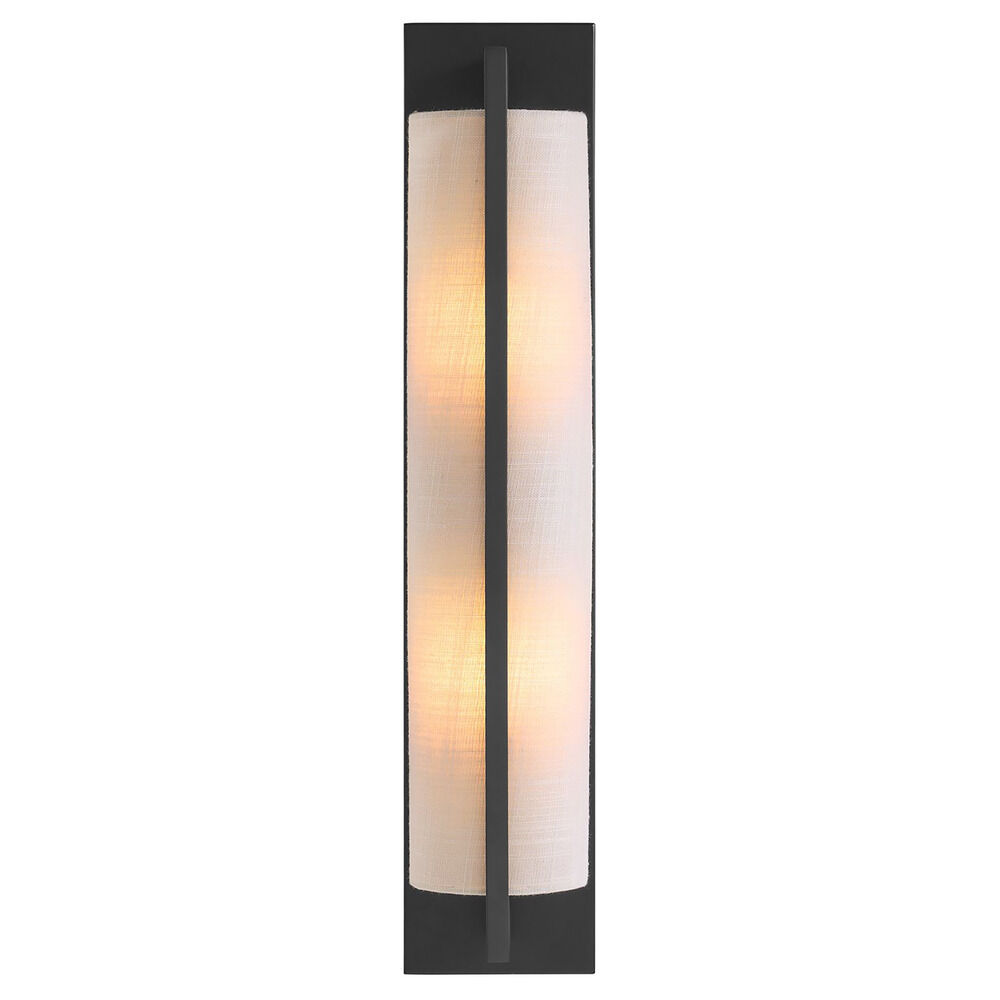 Contemporary / modern matte black 2-light sconce with white fabric shade