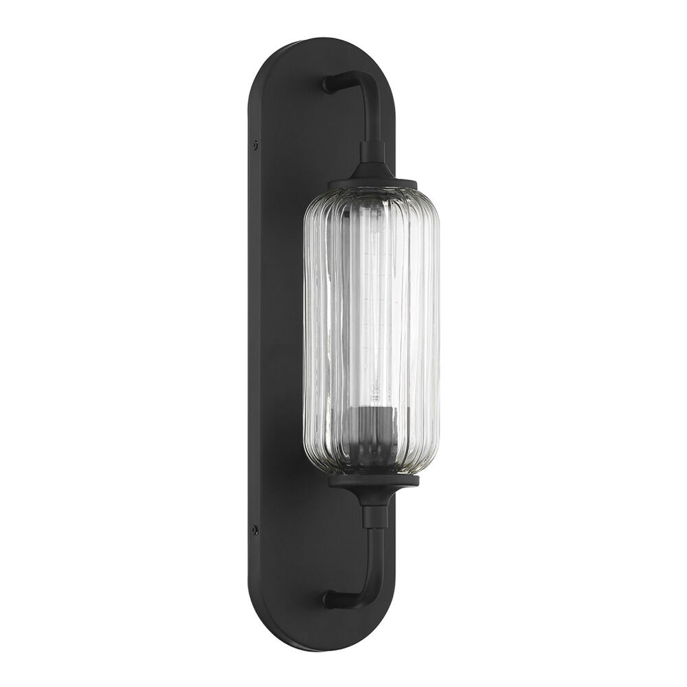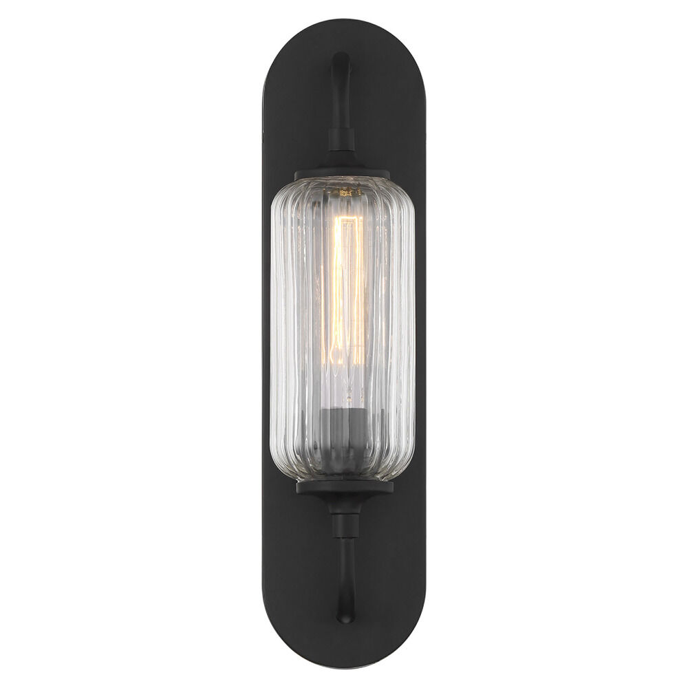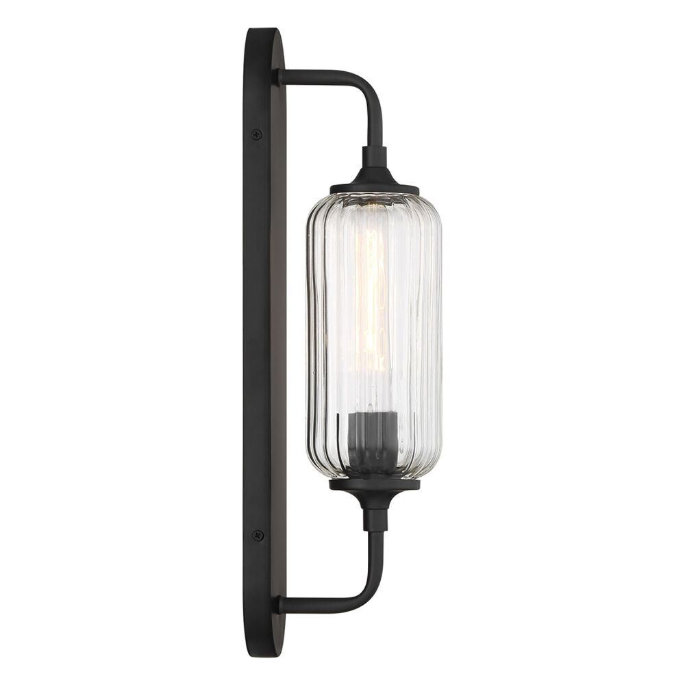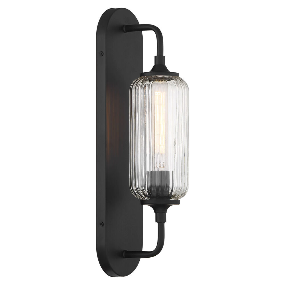 Vintage / retro / industrial matte black 1-light sconce with clear,ribbed clear ribbed glass shade