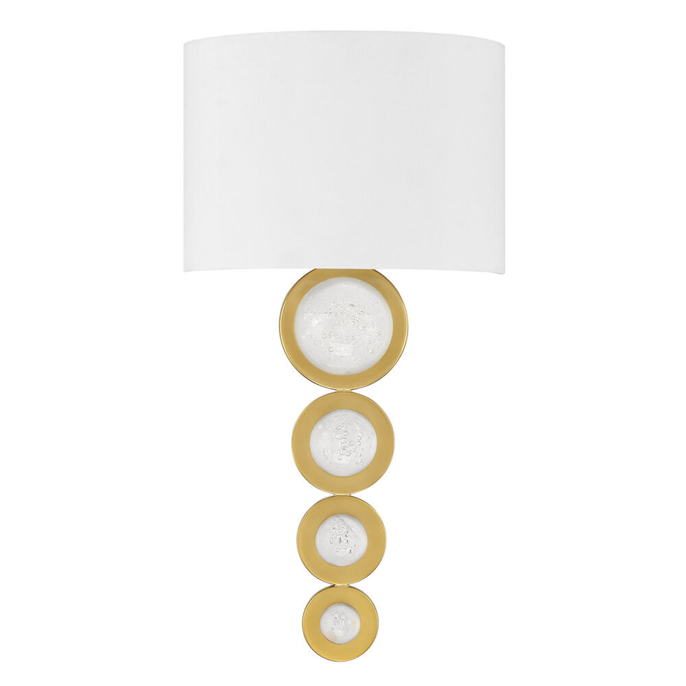 Contemporary / modern warm brass 1-light sconce with white fabric shade