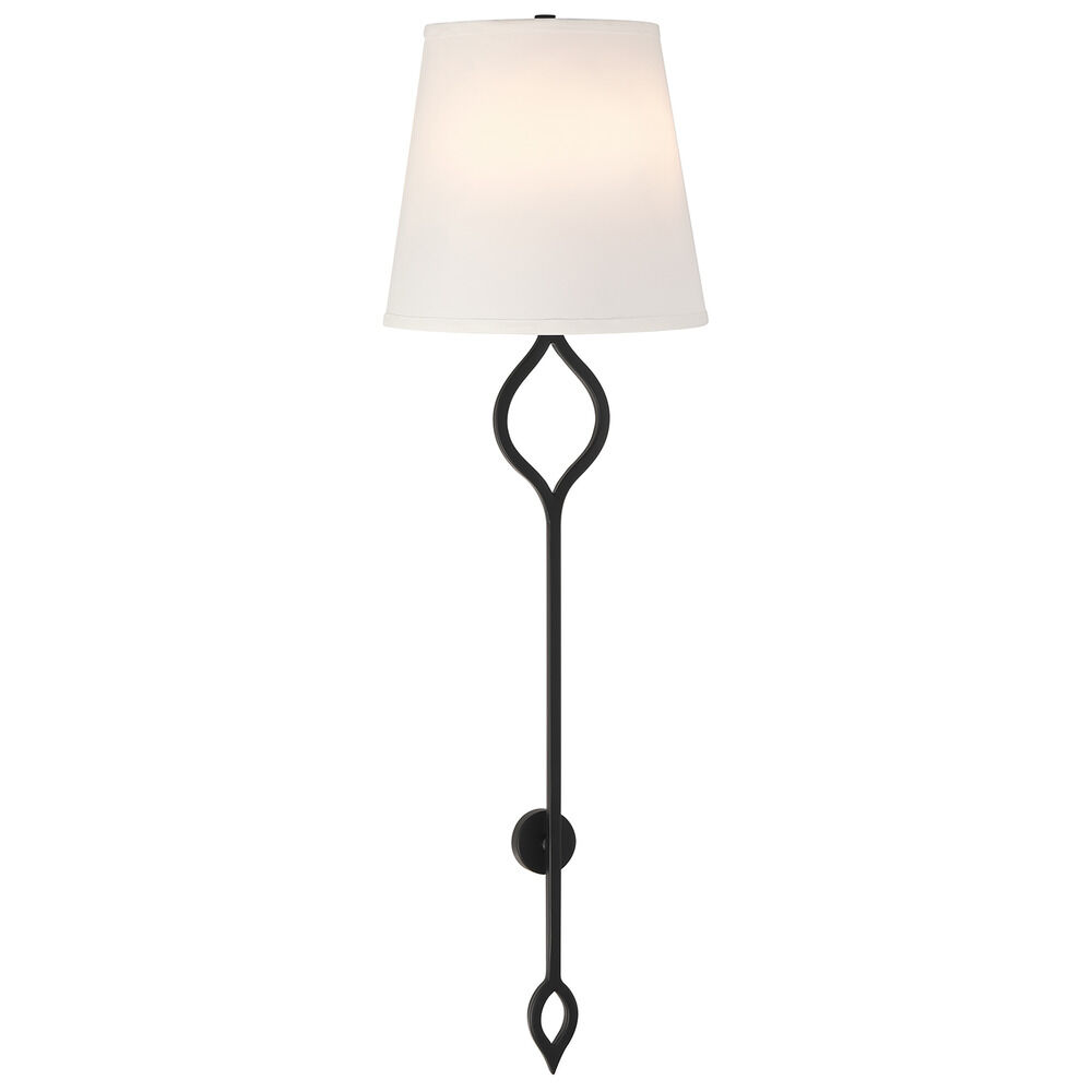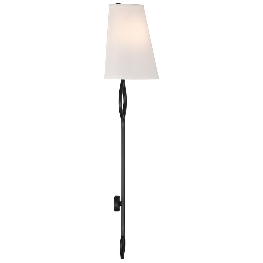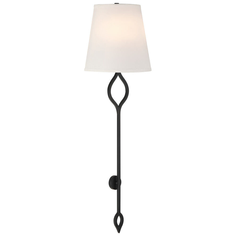 Transitional matte black 2-light sconce with white fabric shade