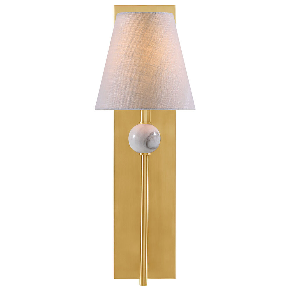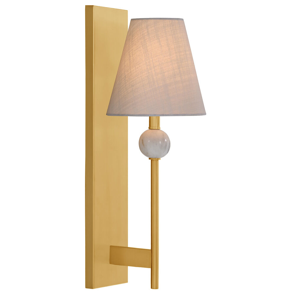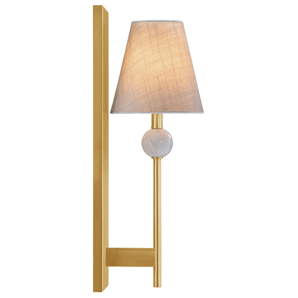Transitional warm brass 1-light sconce with white fabric shade