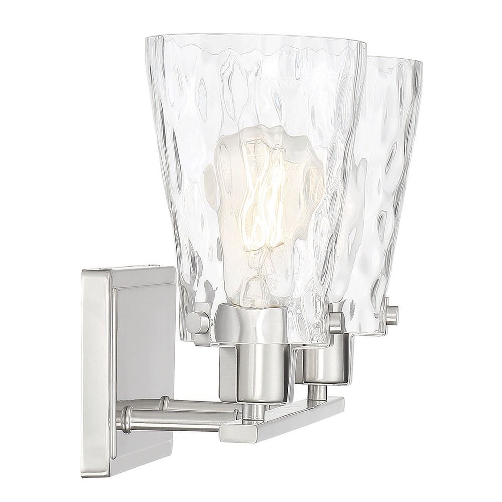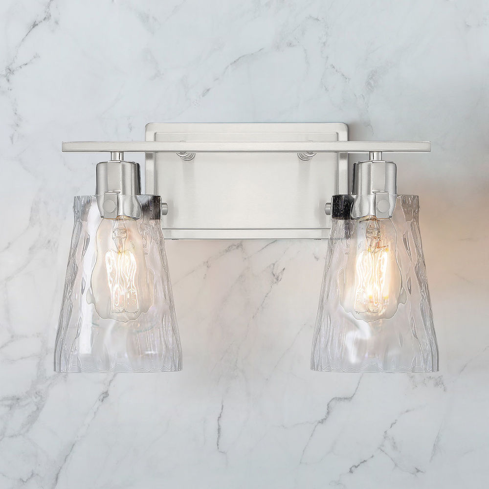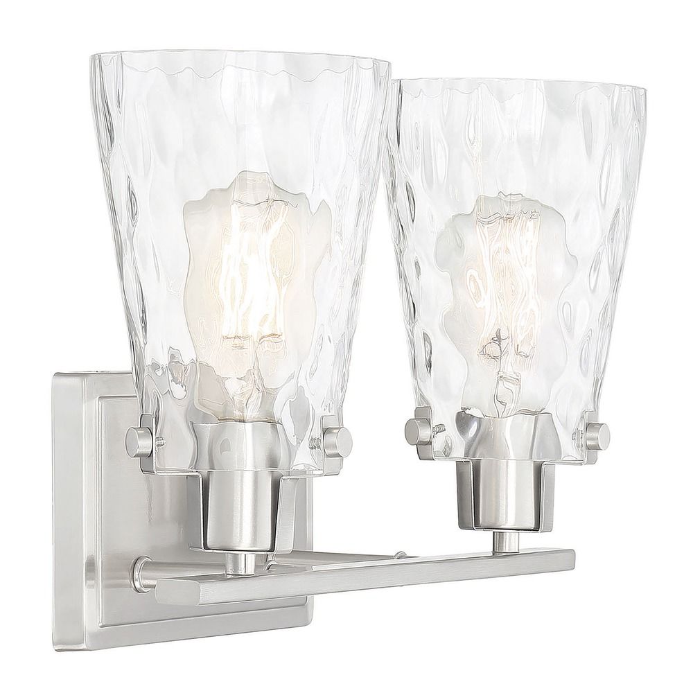 Contemporary / modern satin nickel 2-light bathroom light with water clear glass shade