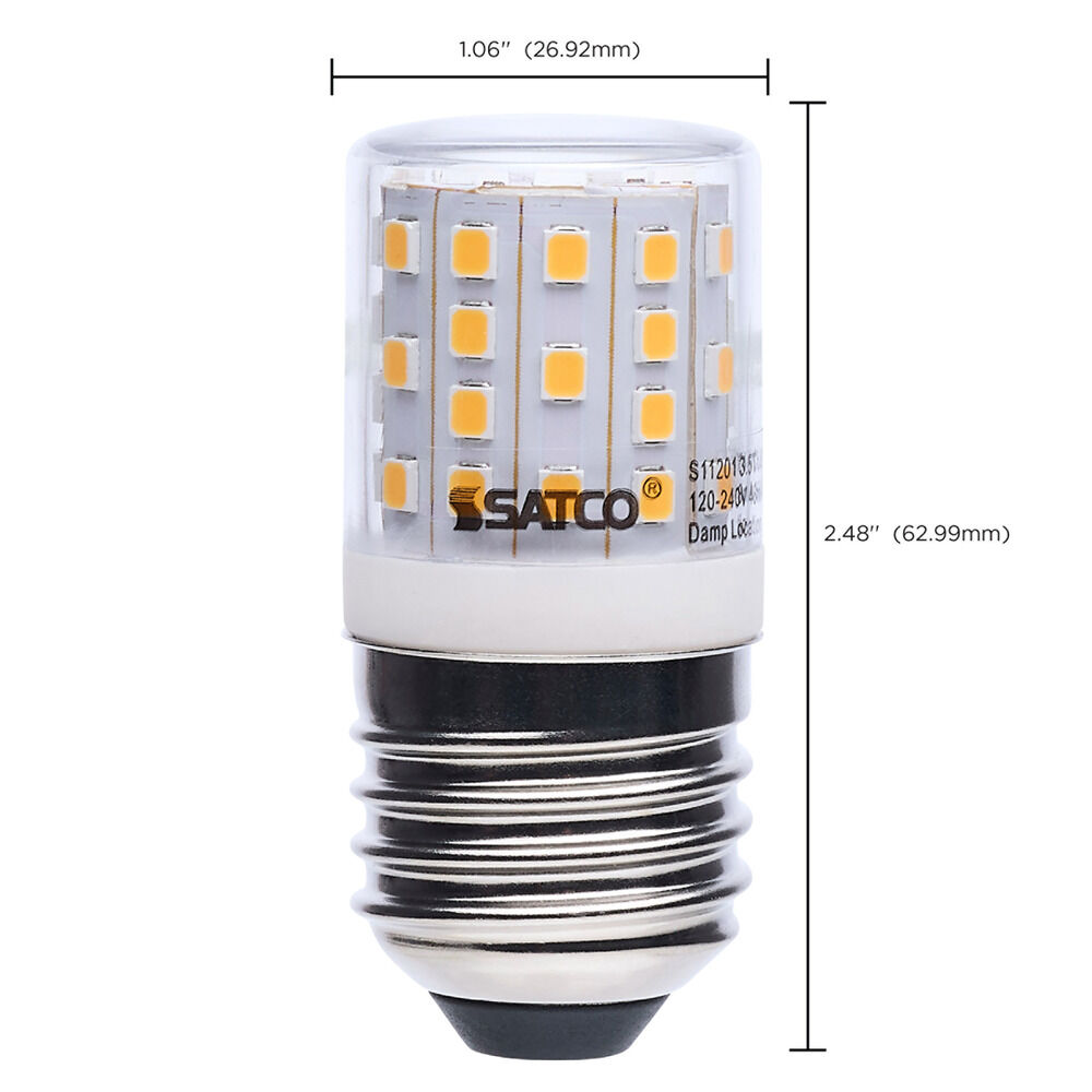 The following are detailed specifications about the 3.5W T14 3000K E27 Base Clear LED Light Bulb by Satco Lighting.