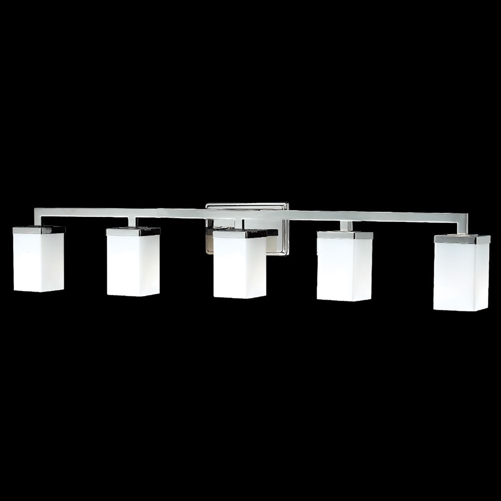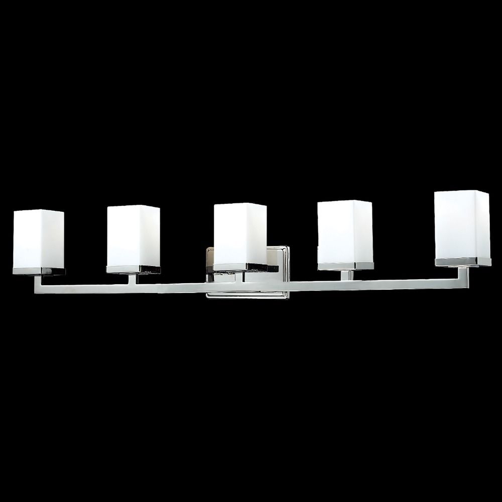 Contemporary / modern chrome 5-light bathroom light with matte opal glass shade