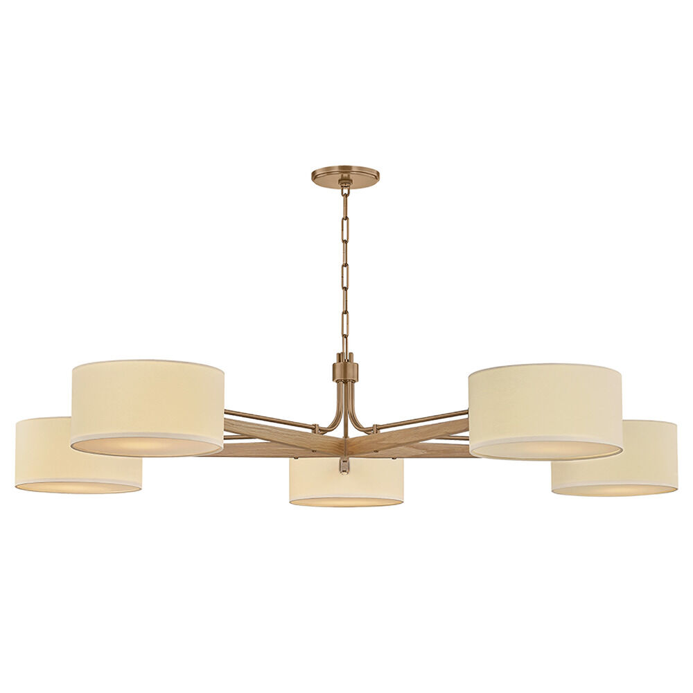 Contemporary / modern patina brass 5-light chandelier with white linen shade