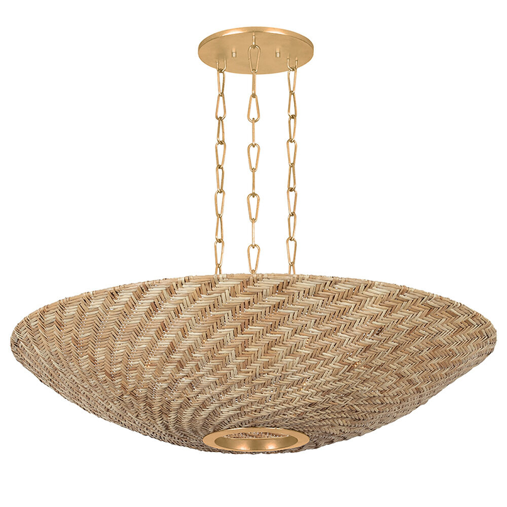 Bohemian vintage gold leaf 6-light pendant light with light natural wicker shade