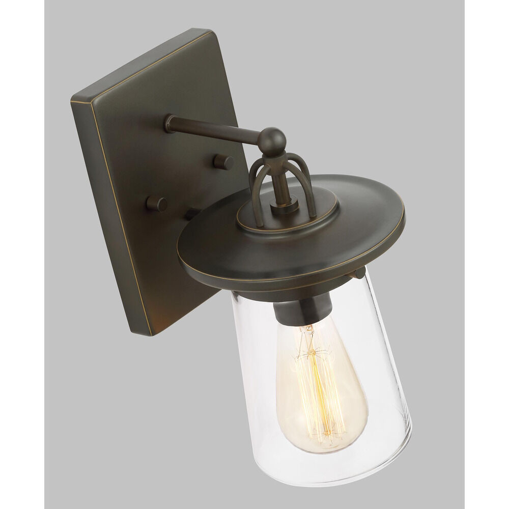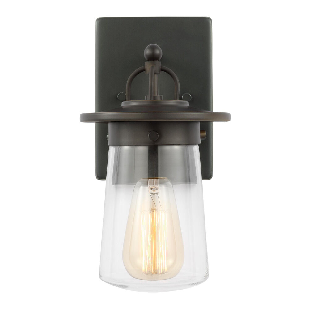 Transitional antique bronze 1-light outdoor wall light with clear glass shade