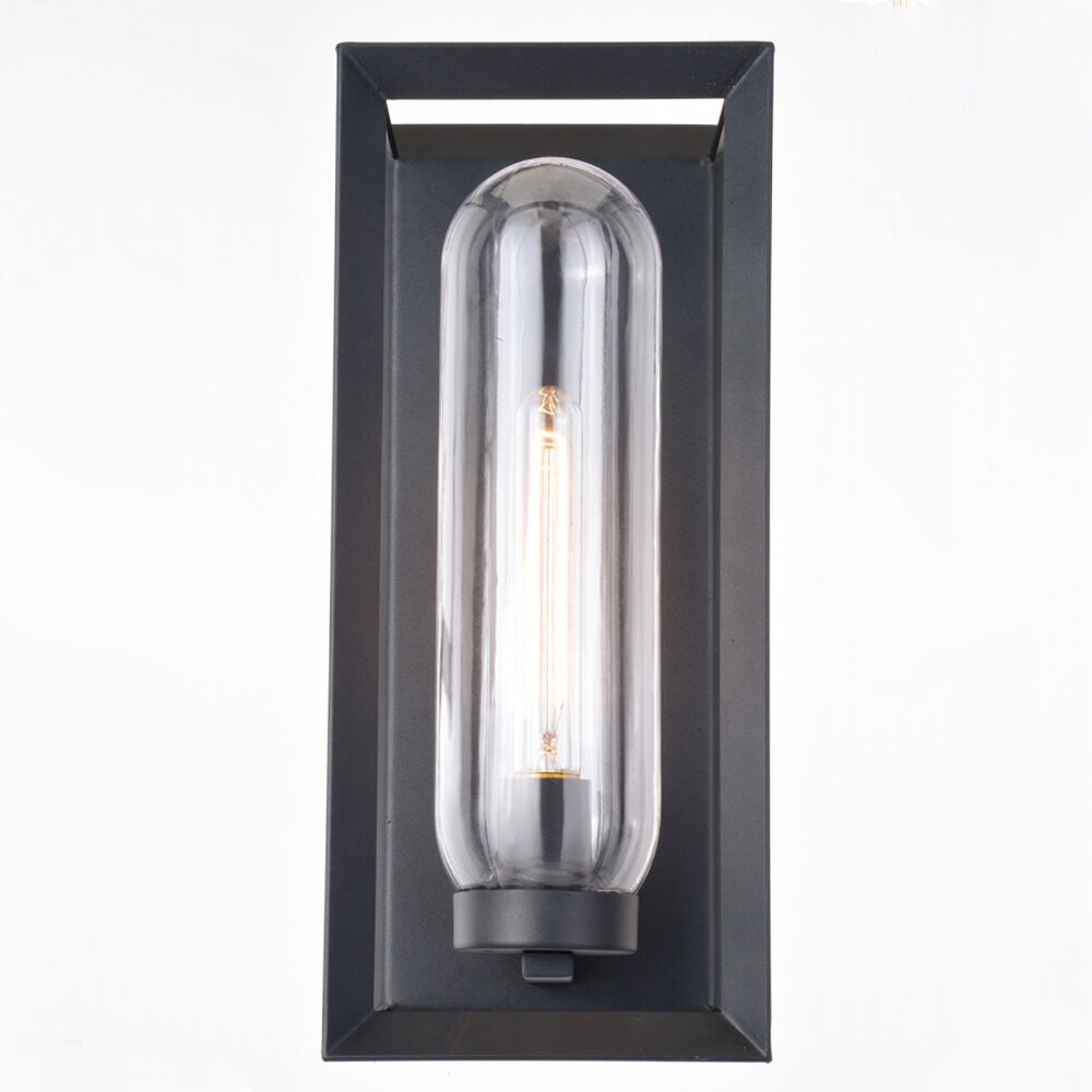 Contemporary / modern textured black 1-light outdoor wall light with clear glass shade