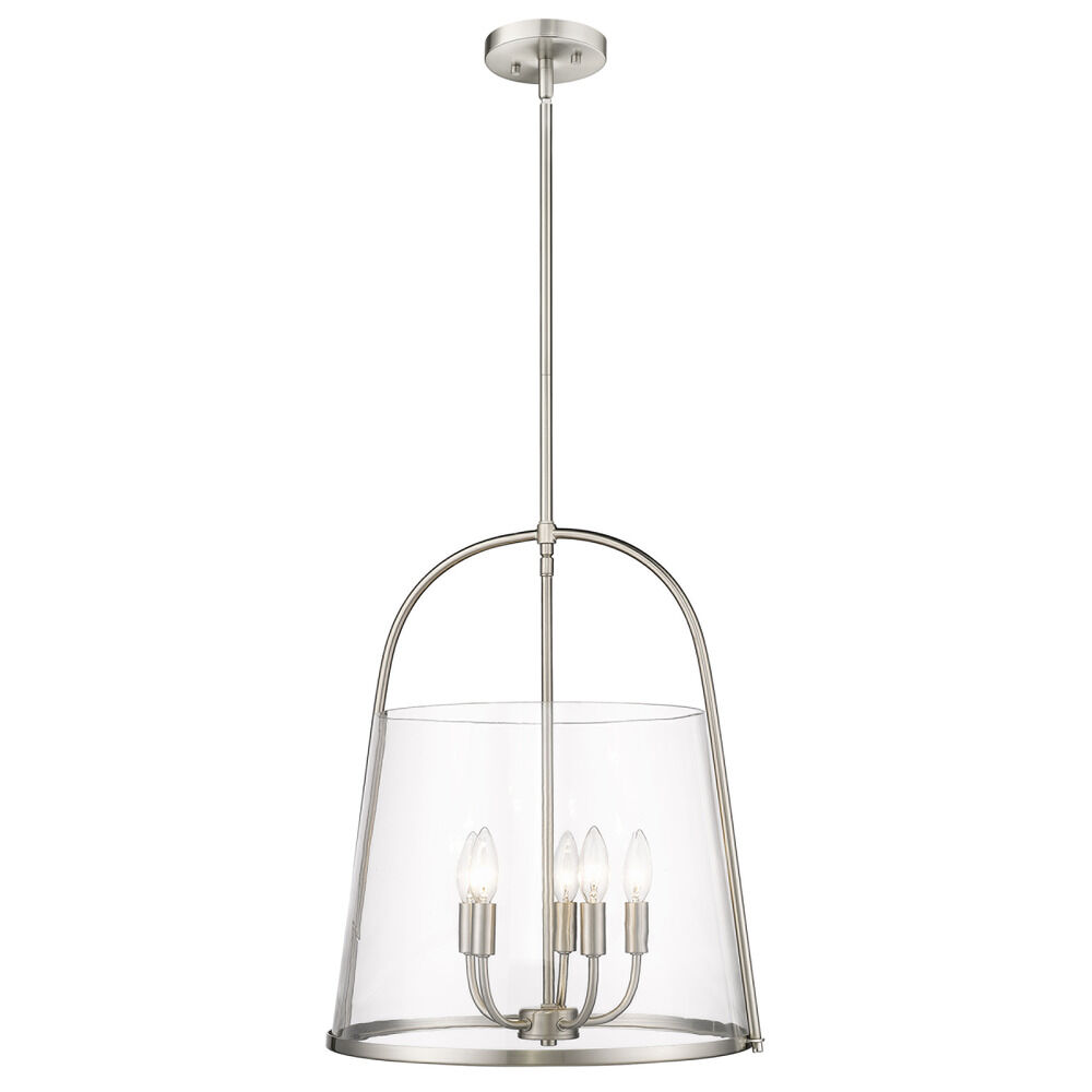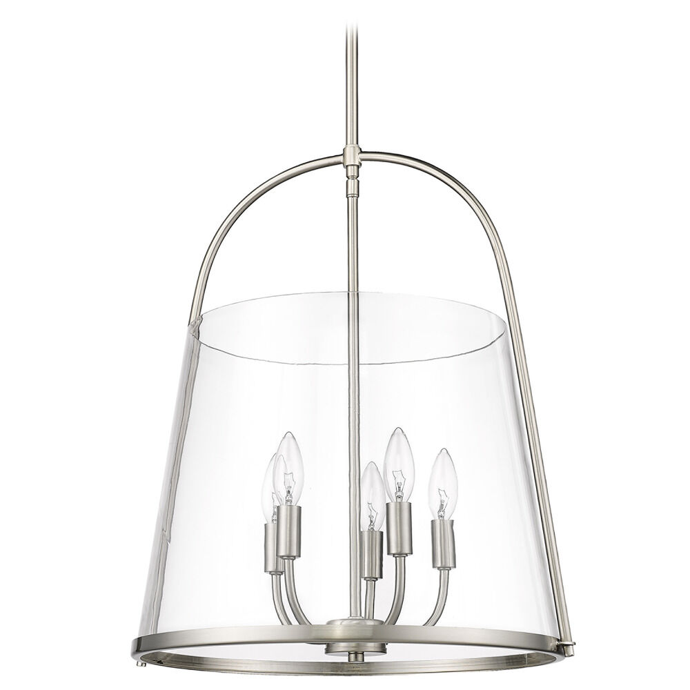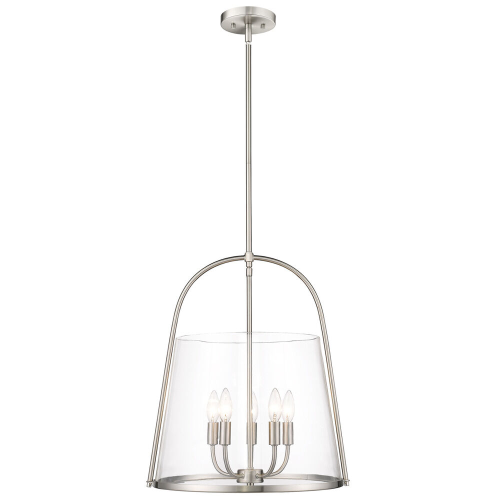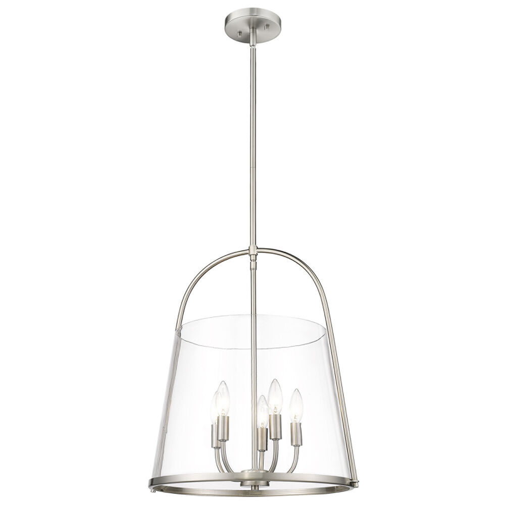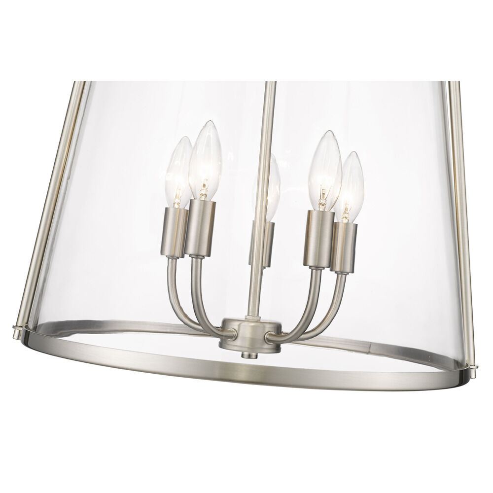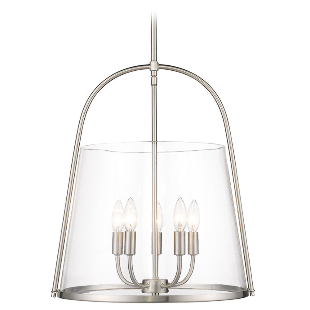 Transitional brushed nickel 5-light pendant light with clear glass shade