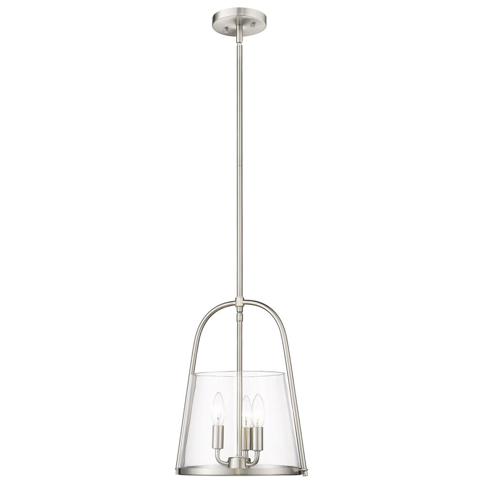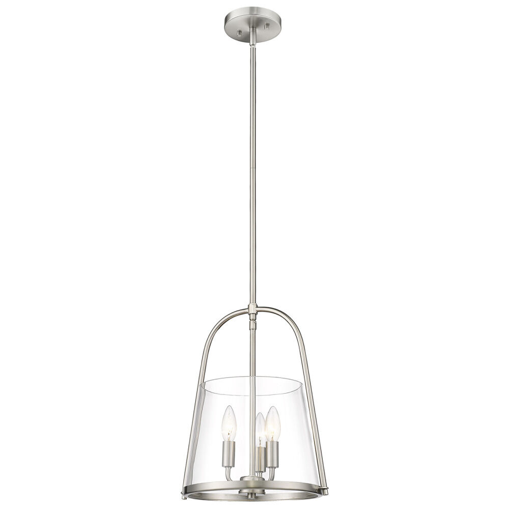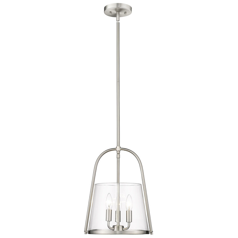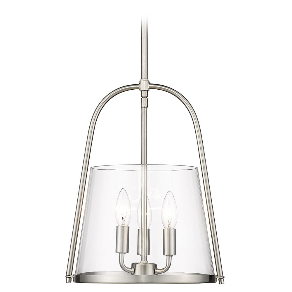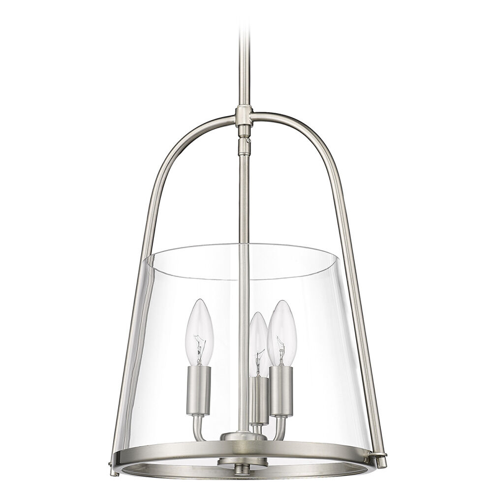 Transitional brushed nickel 3-light pendant light with clear glass shade