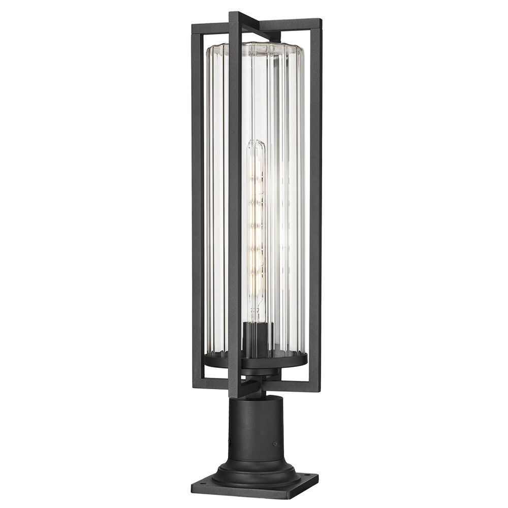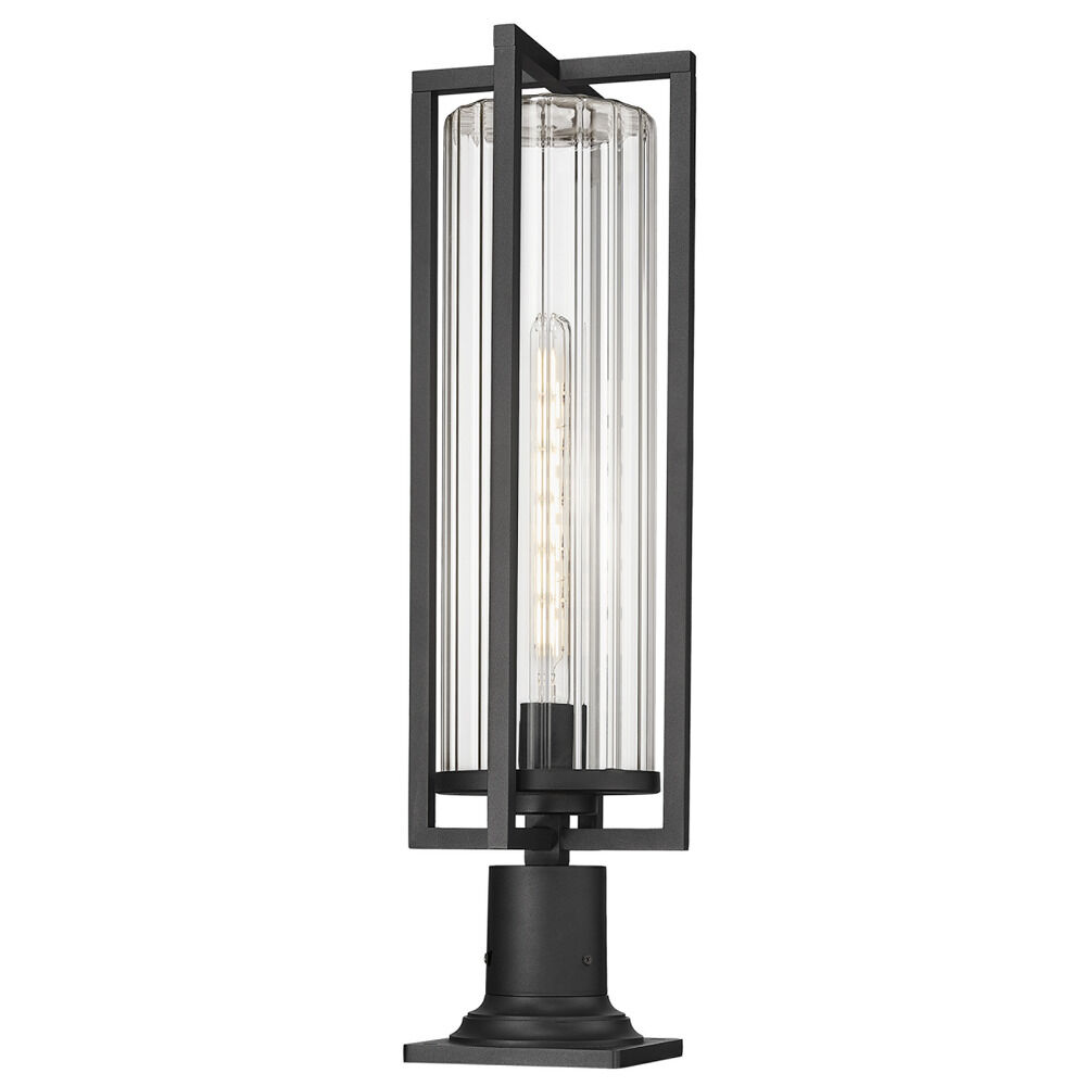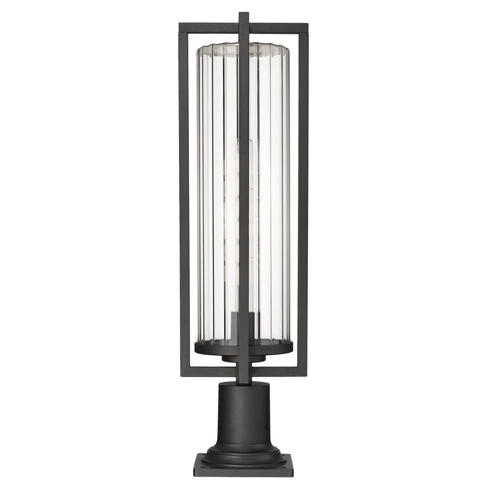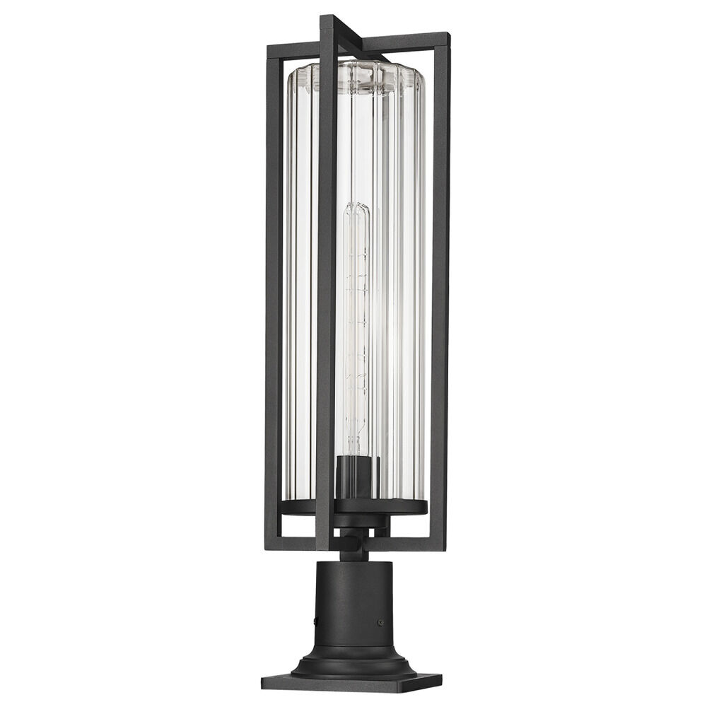 Transitional black 1-light post lighting with clear,ribbed clear ribbed glass shade