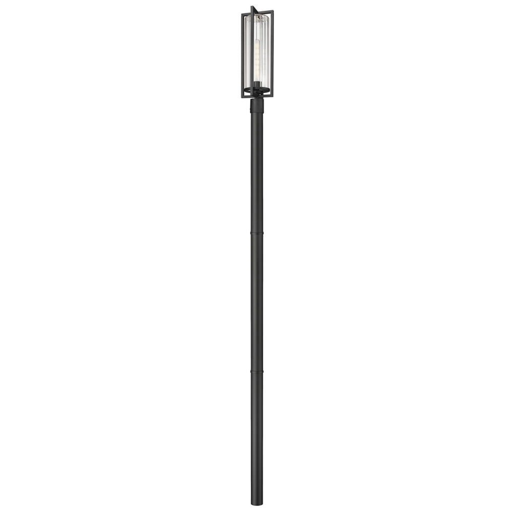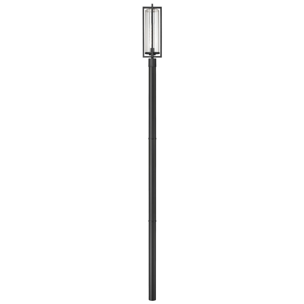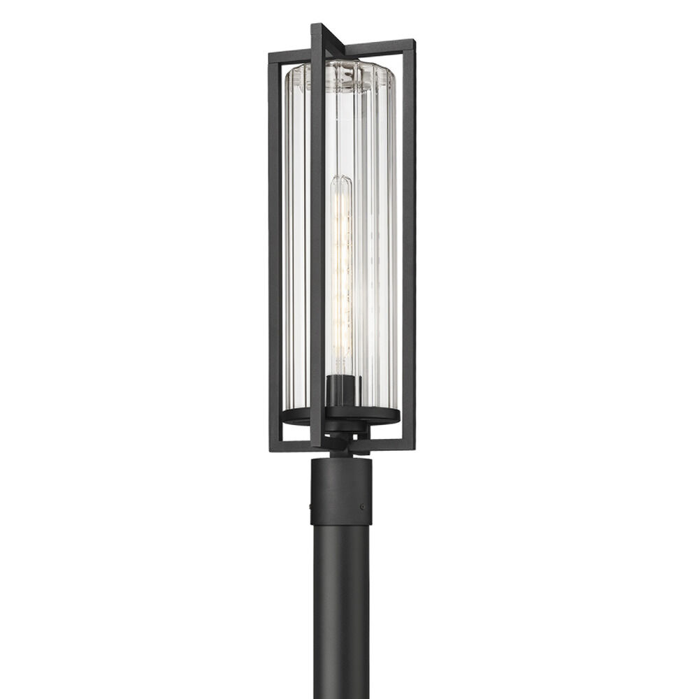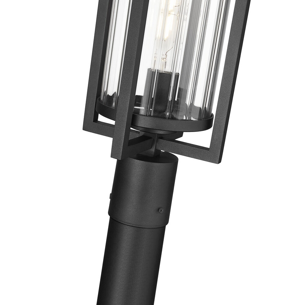 Transitional black 1-light post lighting with clear,ribbed clear ribbed glass shade