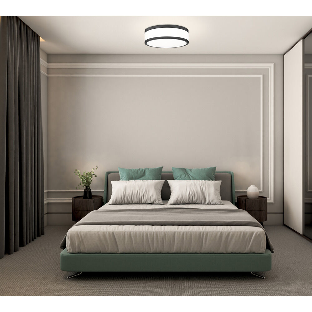 Contemporary / modern matte black 1-light indoor ceiling light with frosted acrylic shade