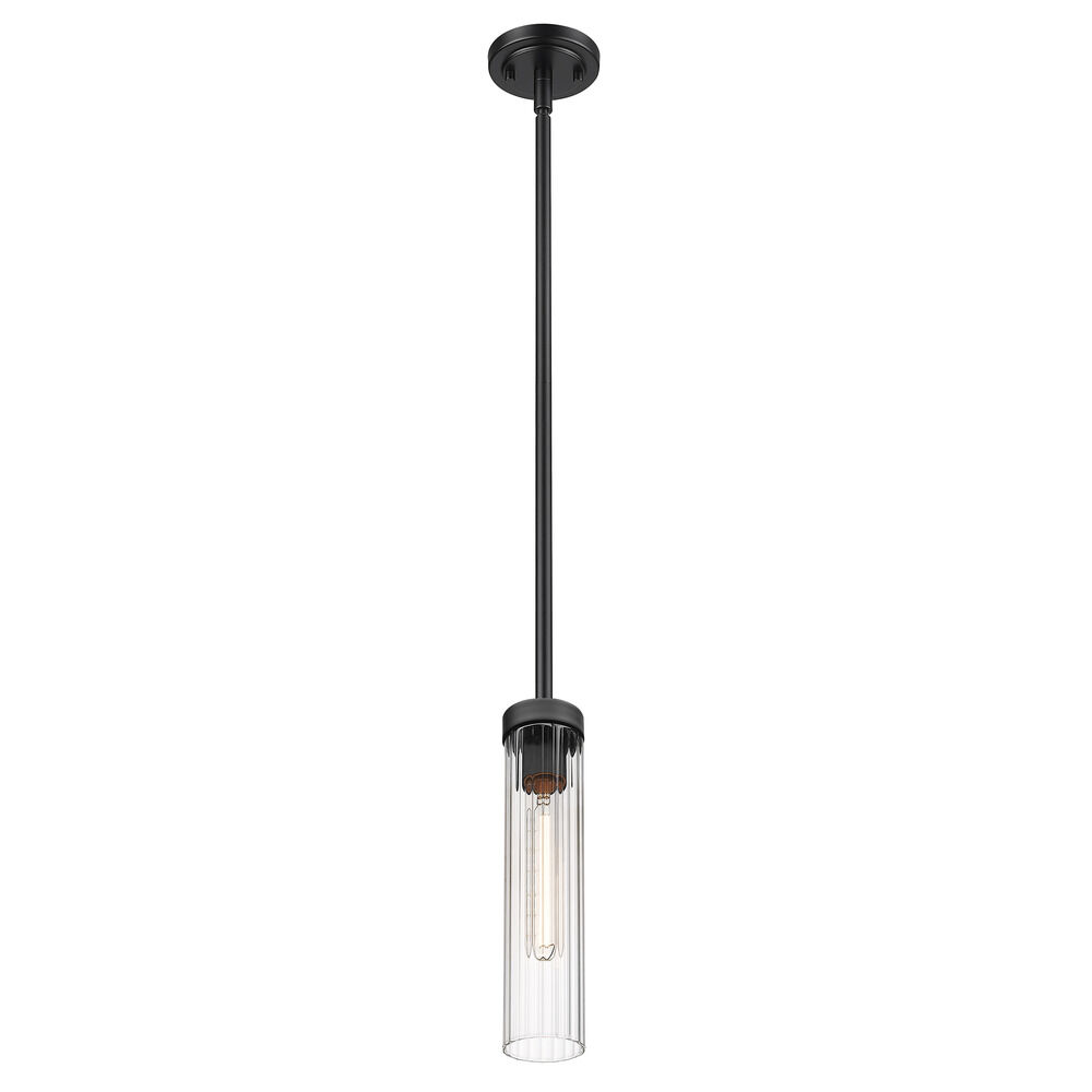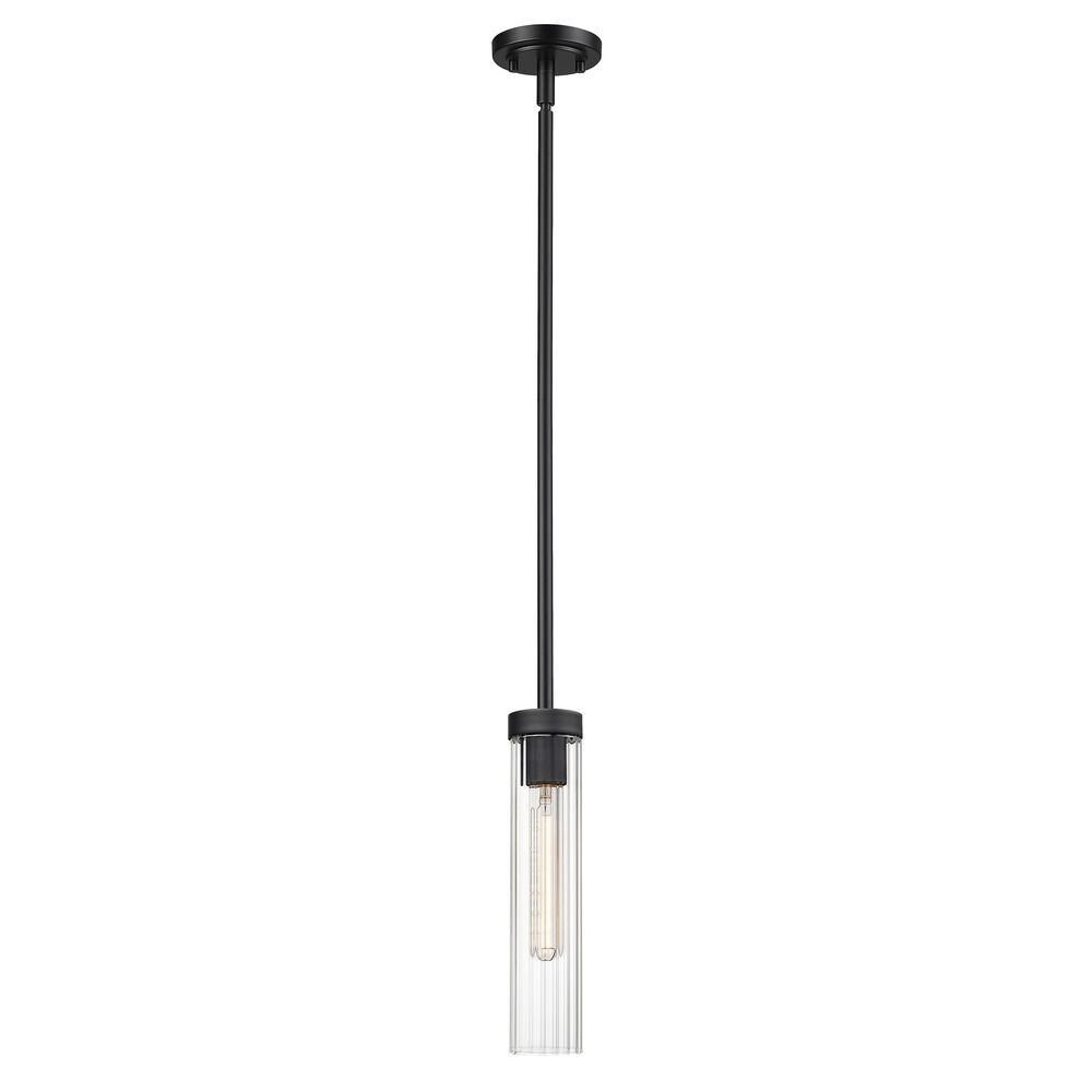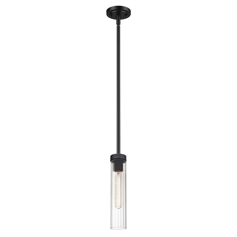 Contemporary / modern matte black 1-light mini-pendant light with clear,ribbed clear glass shade