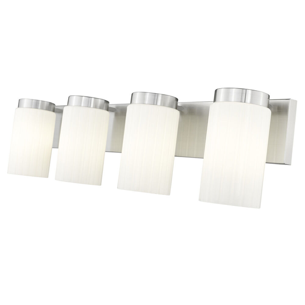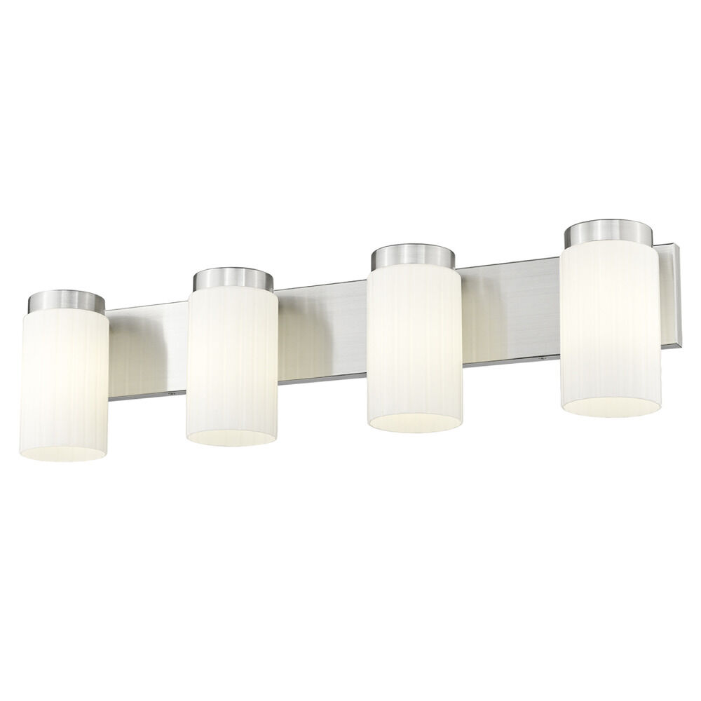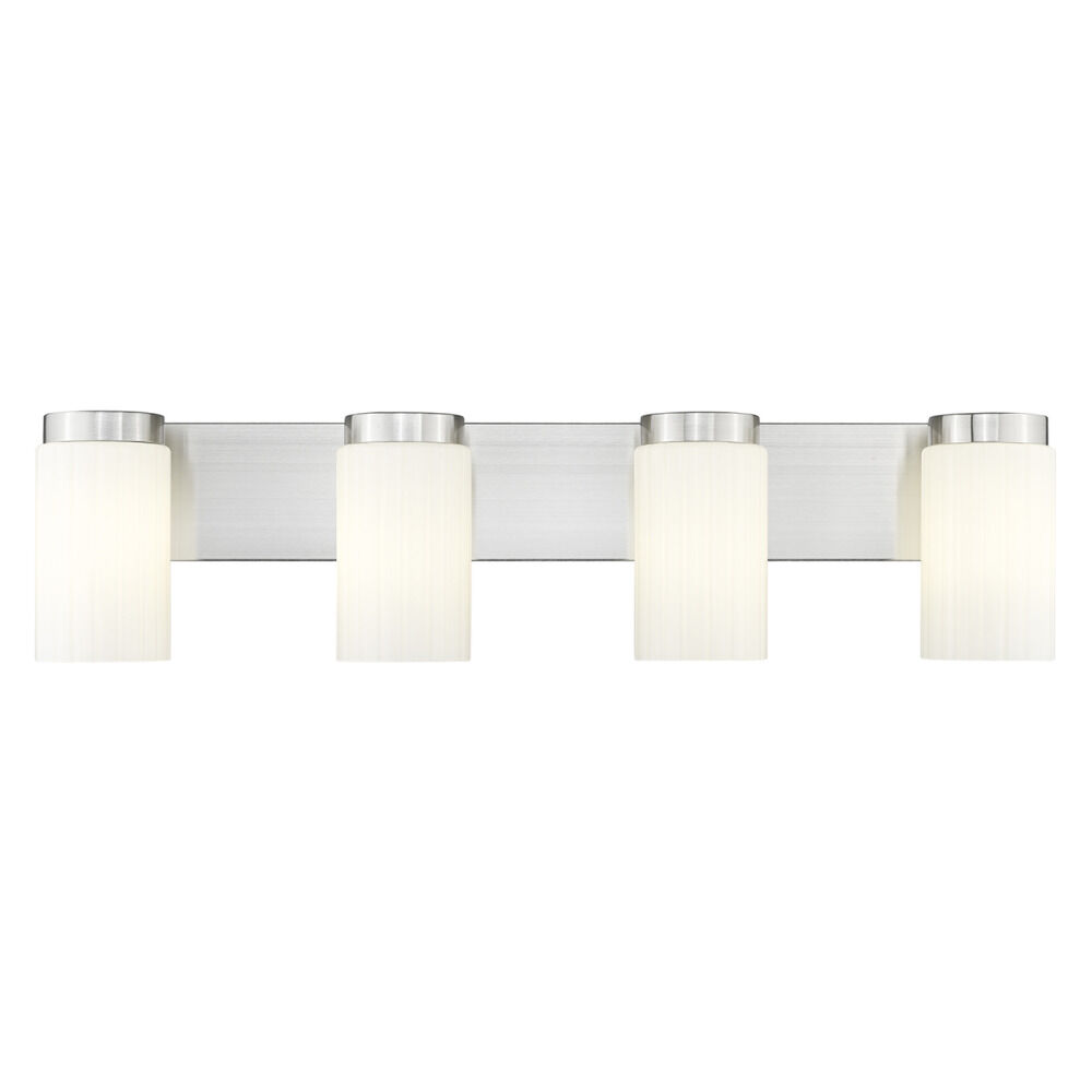 Contemporary / modern brushed nickel 4-light bathroom light with matte,fluted matte opal glass shade