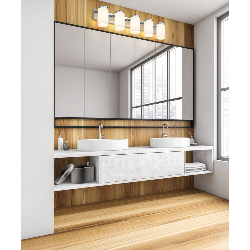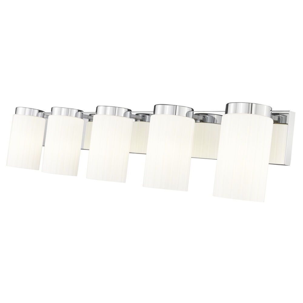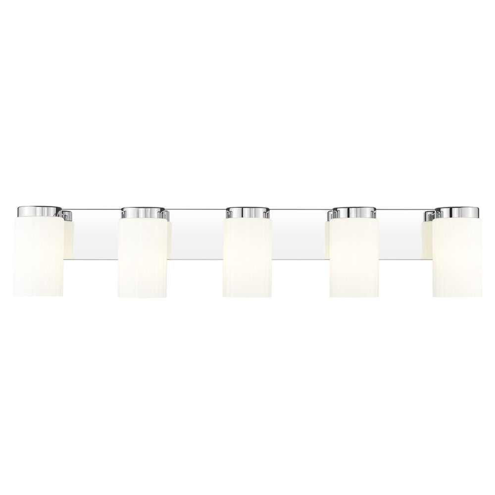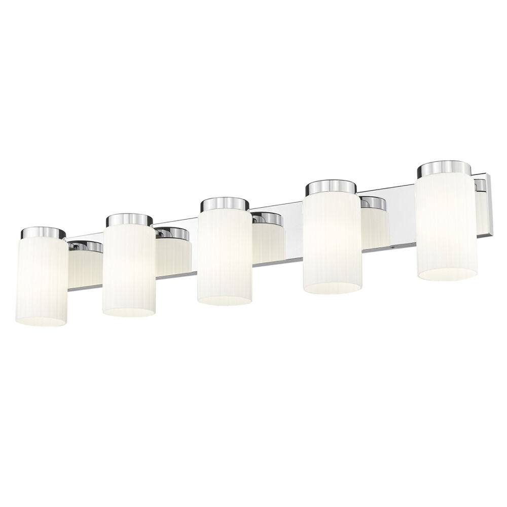 Contemporary / modern chrome 5-light bathroom light with matte,fluted matte opal glass shade